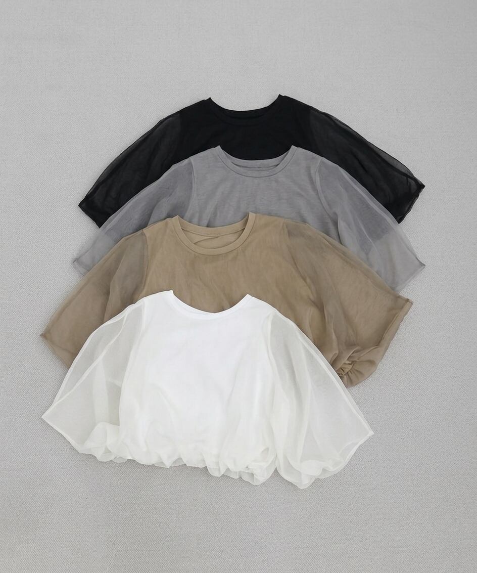 着心地の良いカットソーと程よい透け感のあるオーガンジー素材。