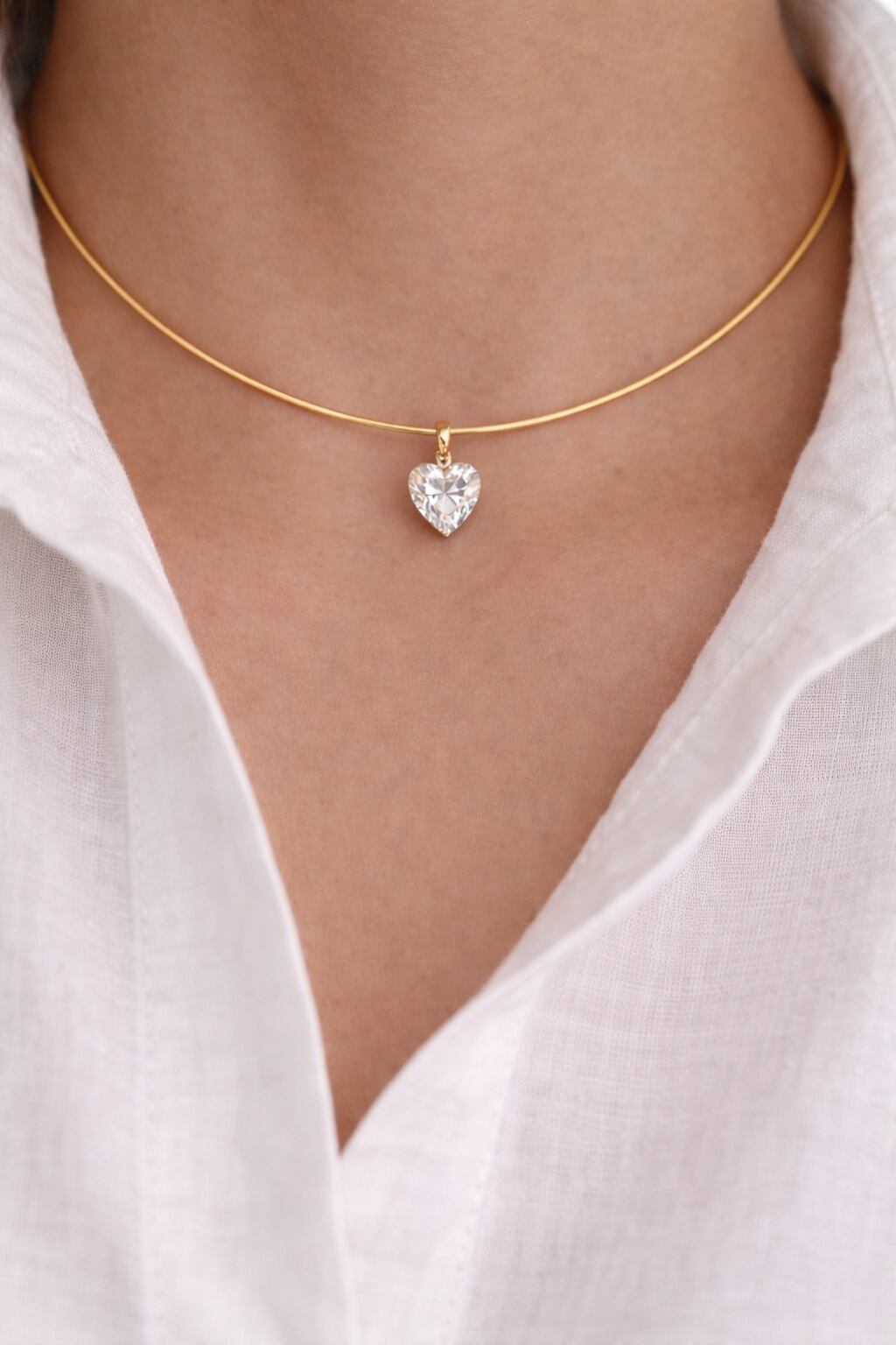 硬めのチョーカーだから首元に沿ってシンプルなのに一気に洗練された印象に。