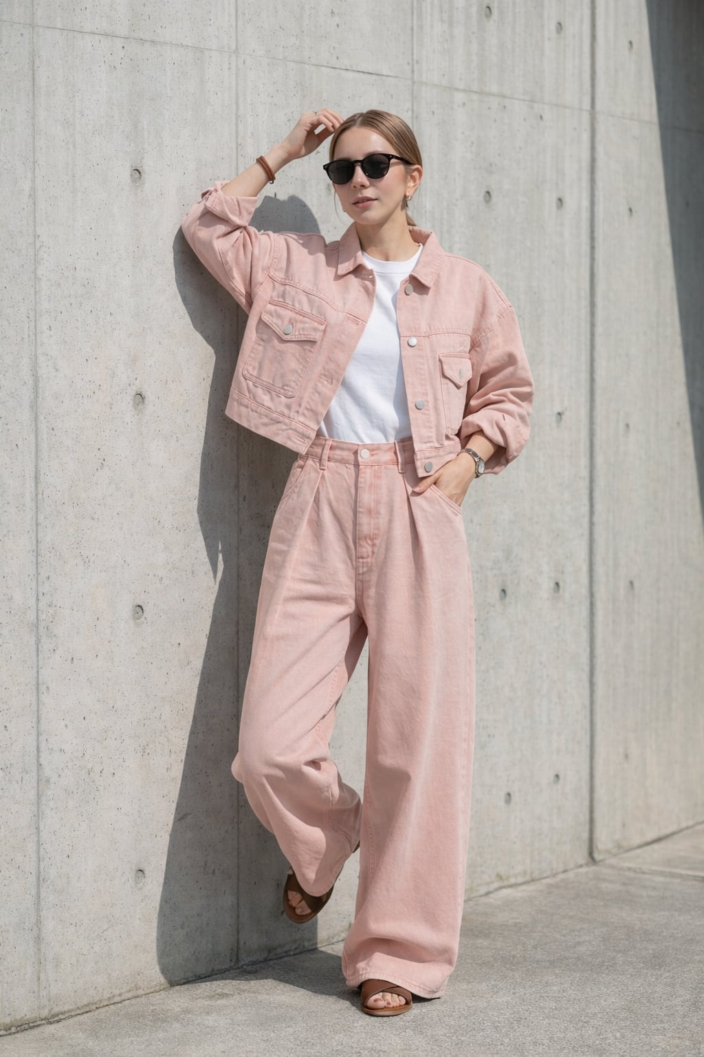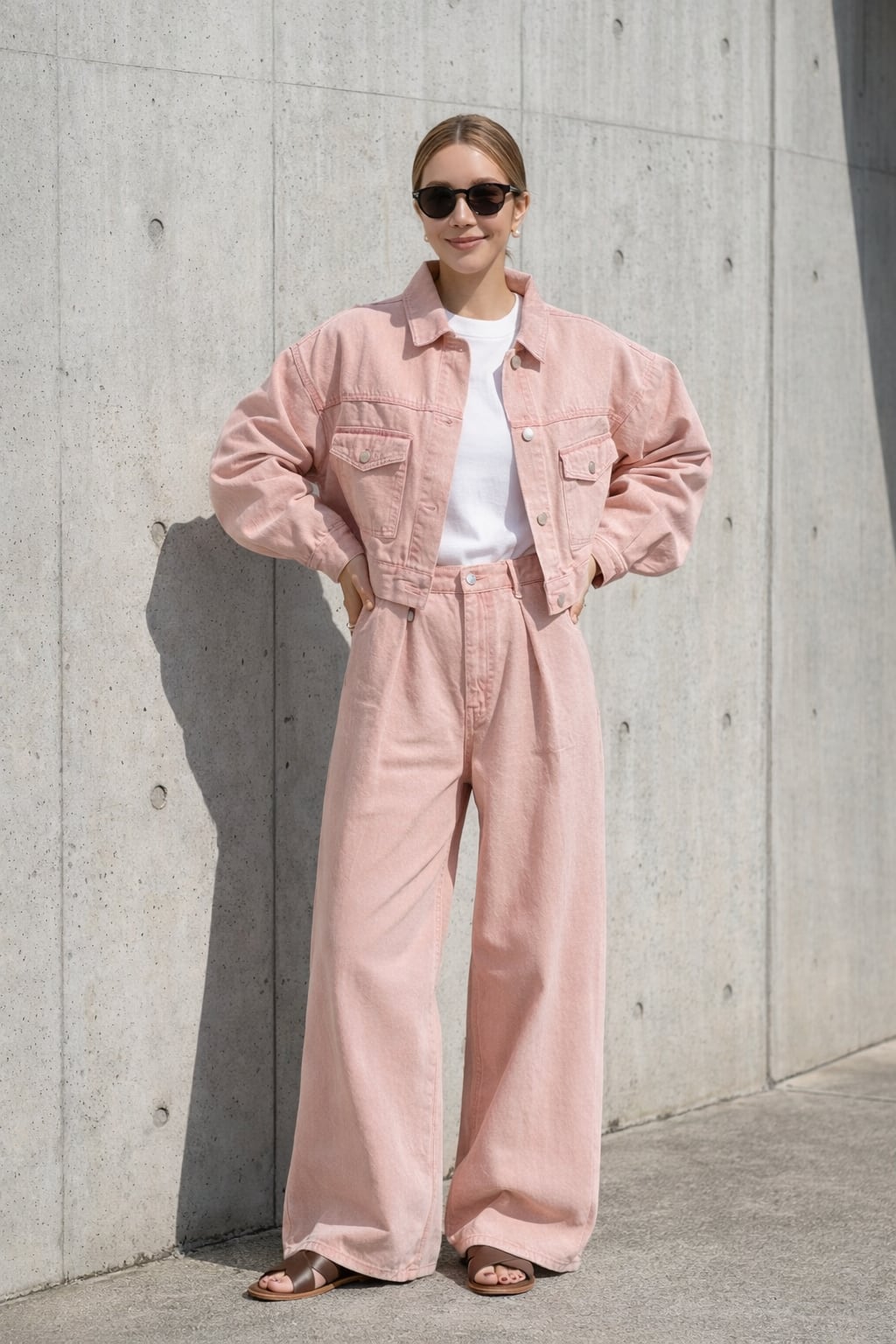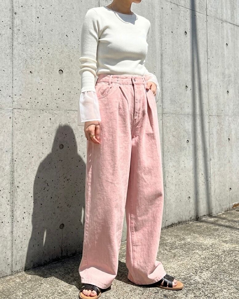 カラーデニムならではの柔らかな発色が、コーディネートのポイントになります