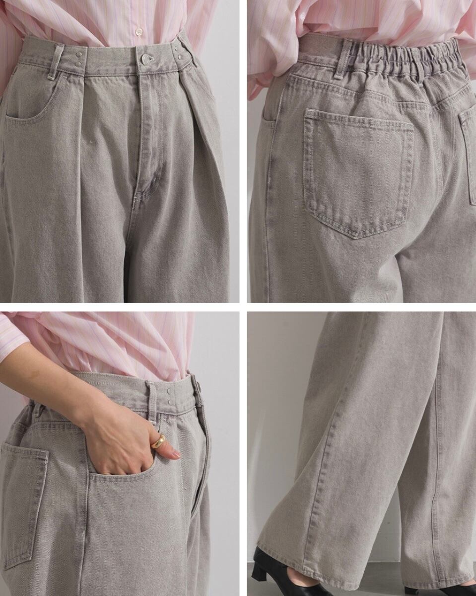 タック入りの立体感あるシルエットなので、ショート丈やコンパクトなトップスと好相性です