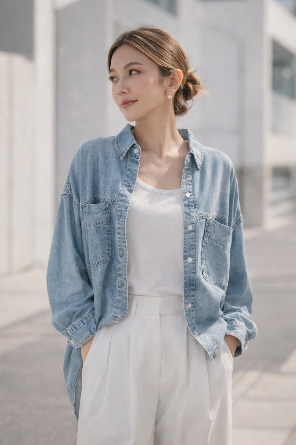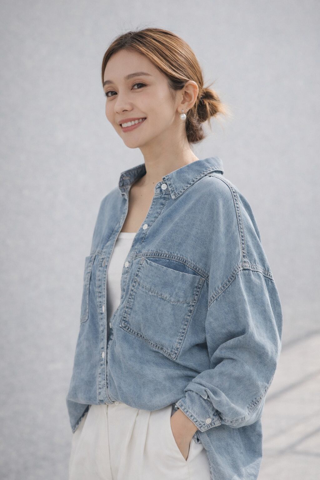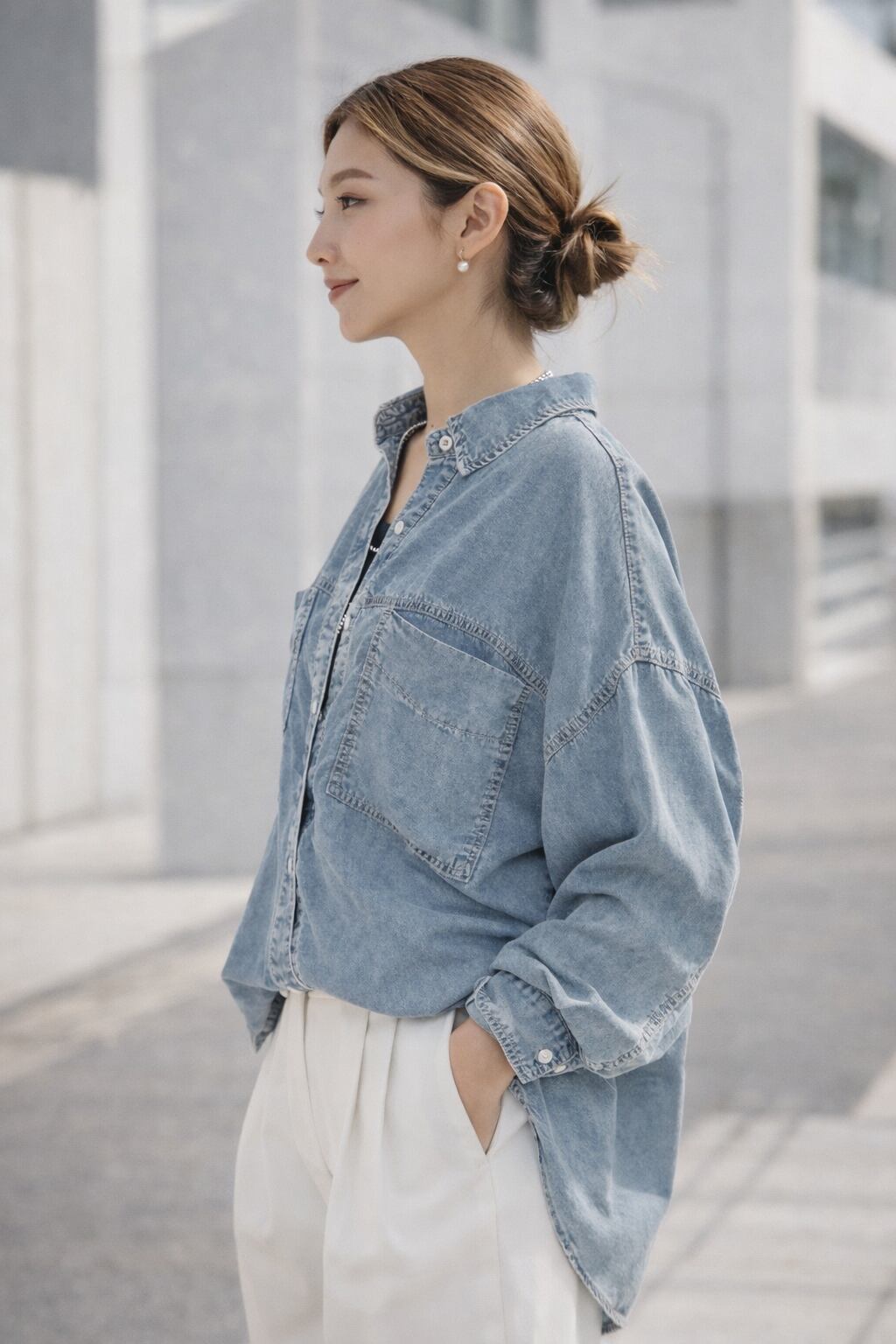 柔らかく落ち感のある素材感で、カジュアルながらも女性らしい印象に仕上げました