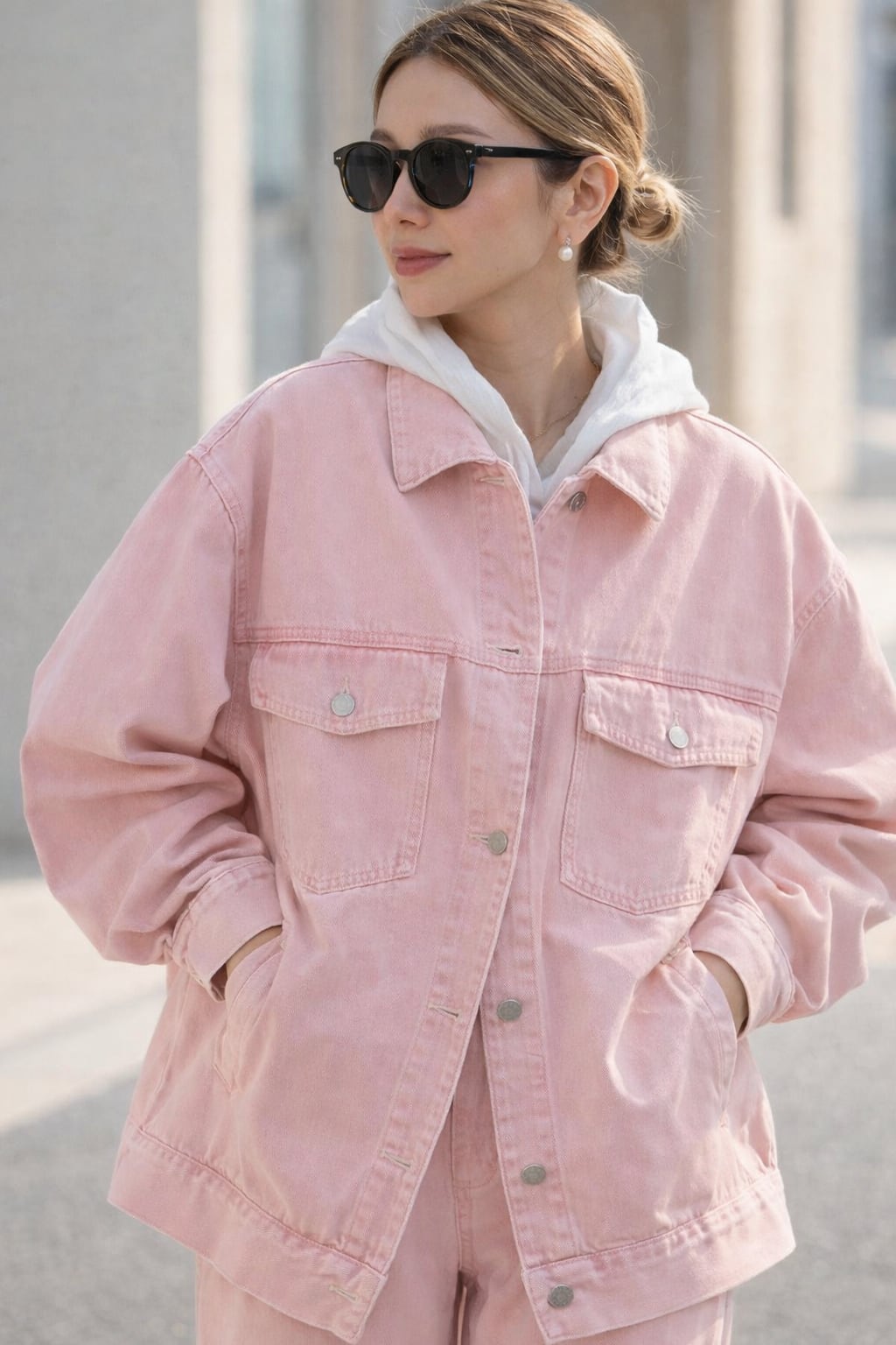 ゆったりとした肩幅とバスト128cmのオーバーサイズ設計で、抜け感のあるこなれた印象に仕上げました