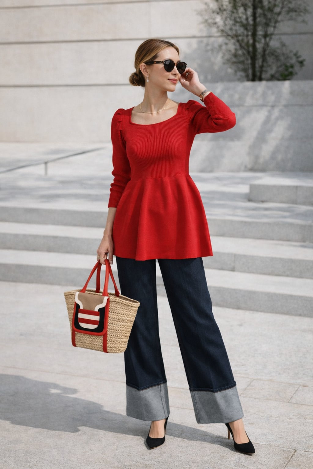 デコルテを美しく魅せる、計算されたスクエアネックチュニック。