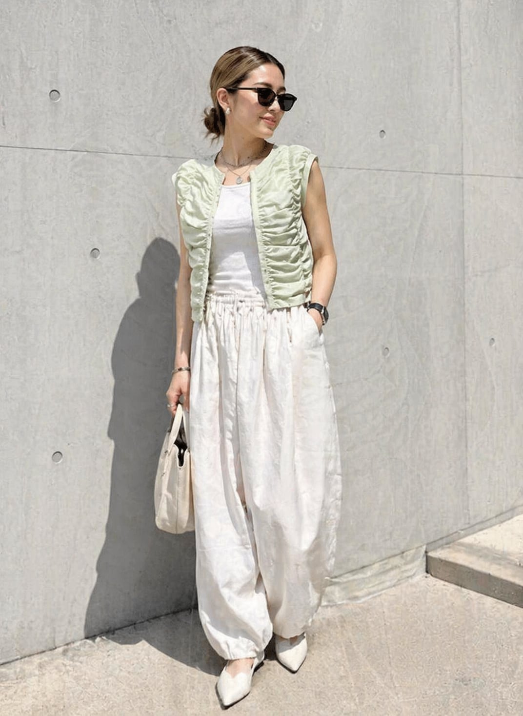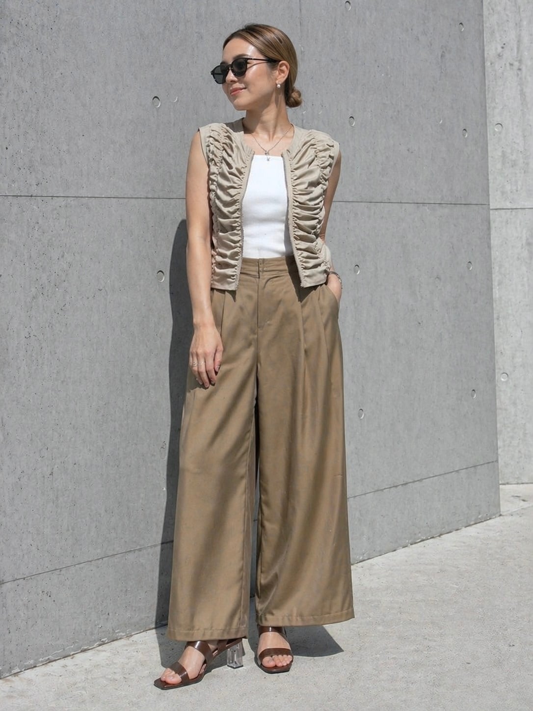 ホックデザインのシャーリングベスト