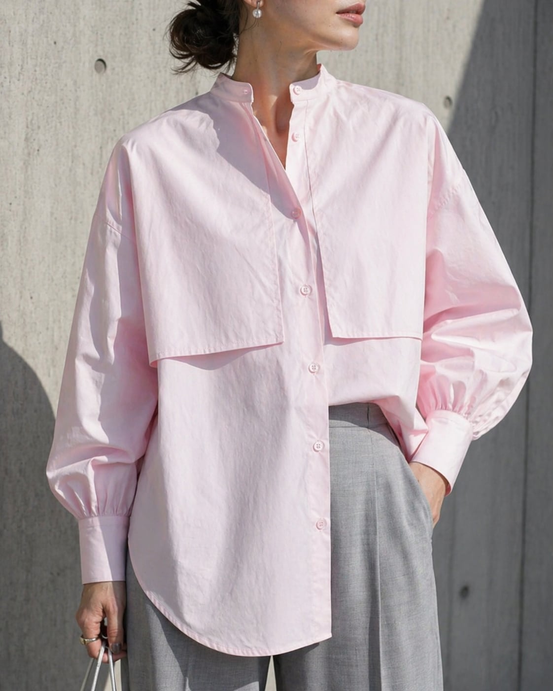 前開きのシャツだからこそできるこのテクニックは、こなれ感が出ておすすめです。