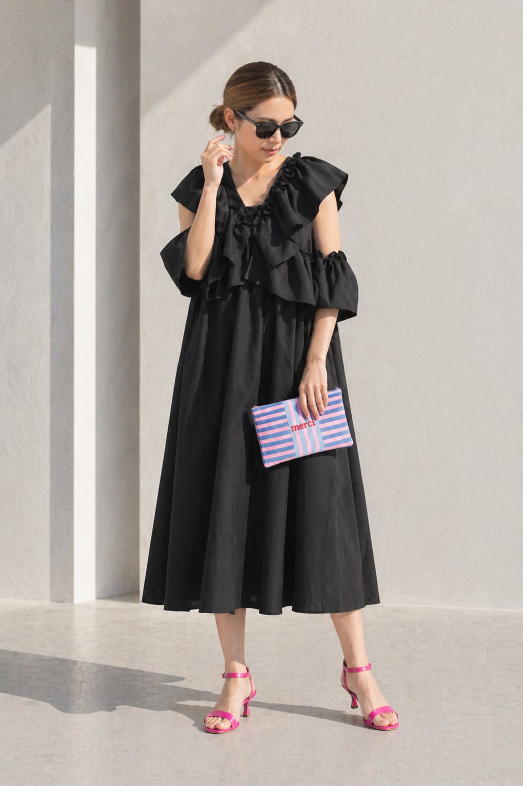 両サイドに、二つずつのフリルが付いており