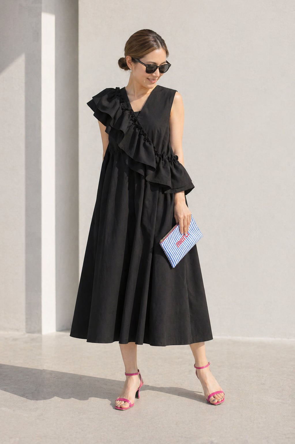 フリルが付いたノースリーブワンピース