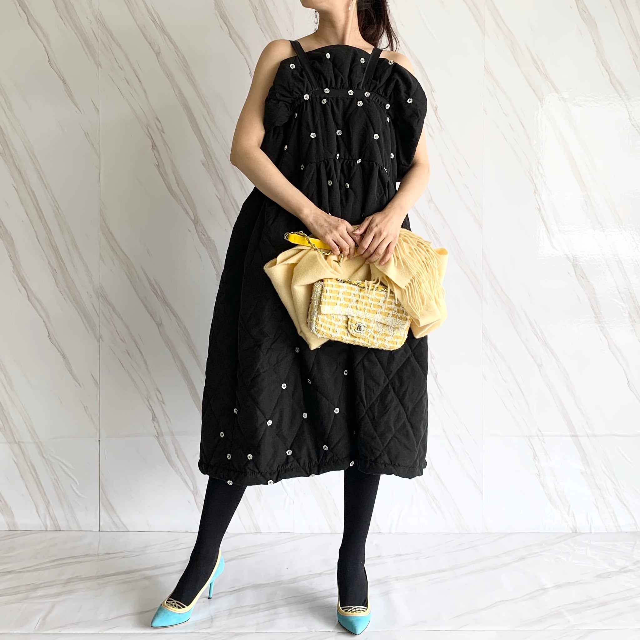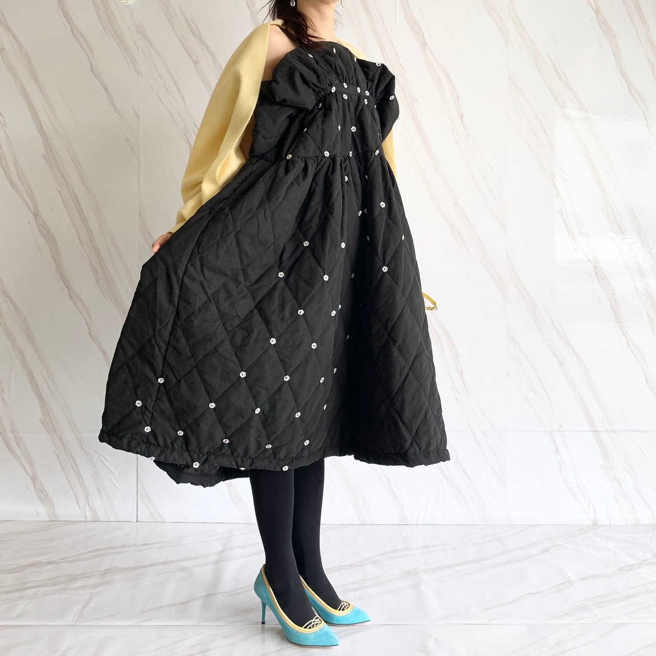 地厚なキルティング生地に小花が可愛い華やかなワンピースです。