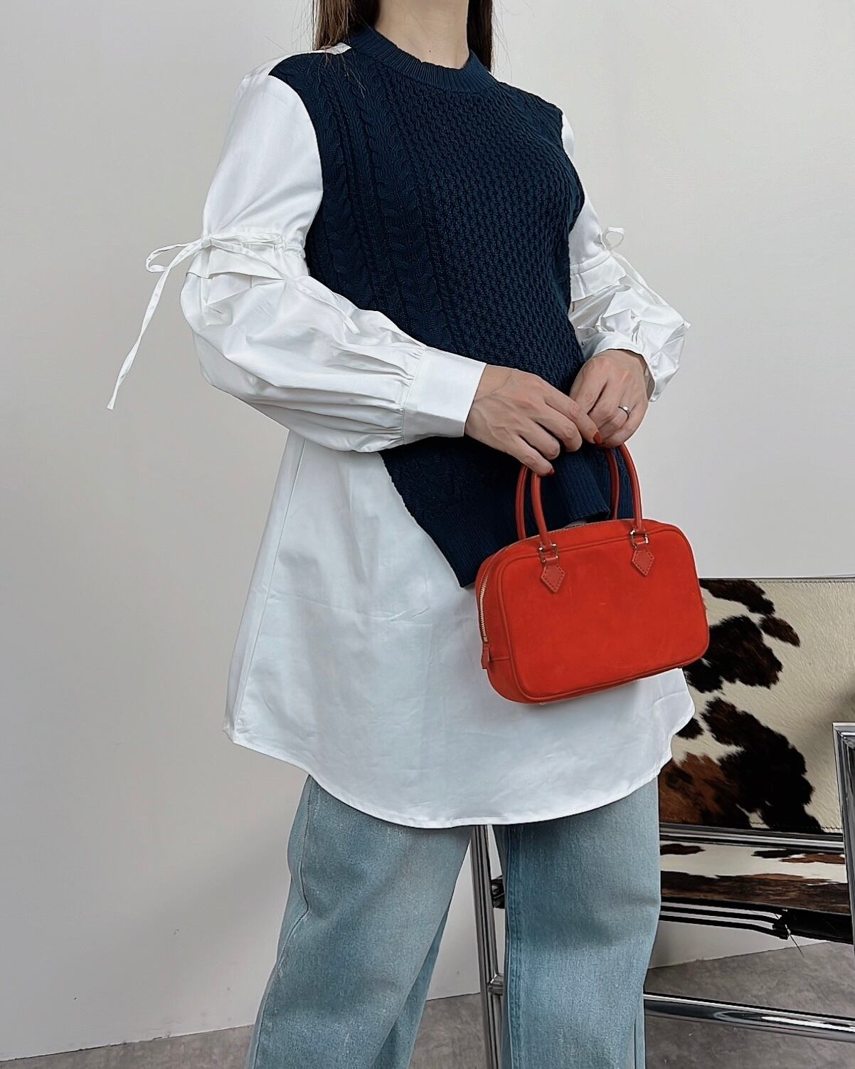異素材コンビが素敵なトップスです。
