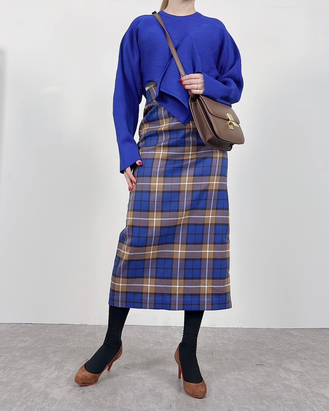 Iラインのチェック柄がオシャレなタイトスカートです。