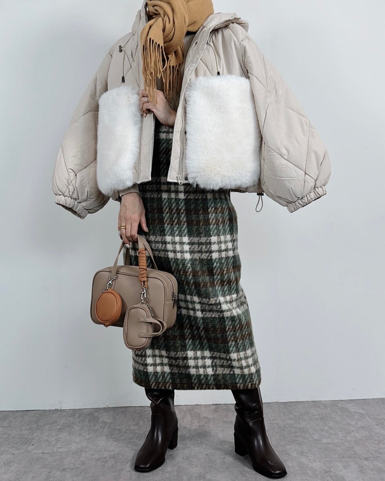暖かい起毛チェックのオシャレなタイトスカートです。