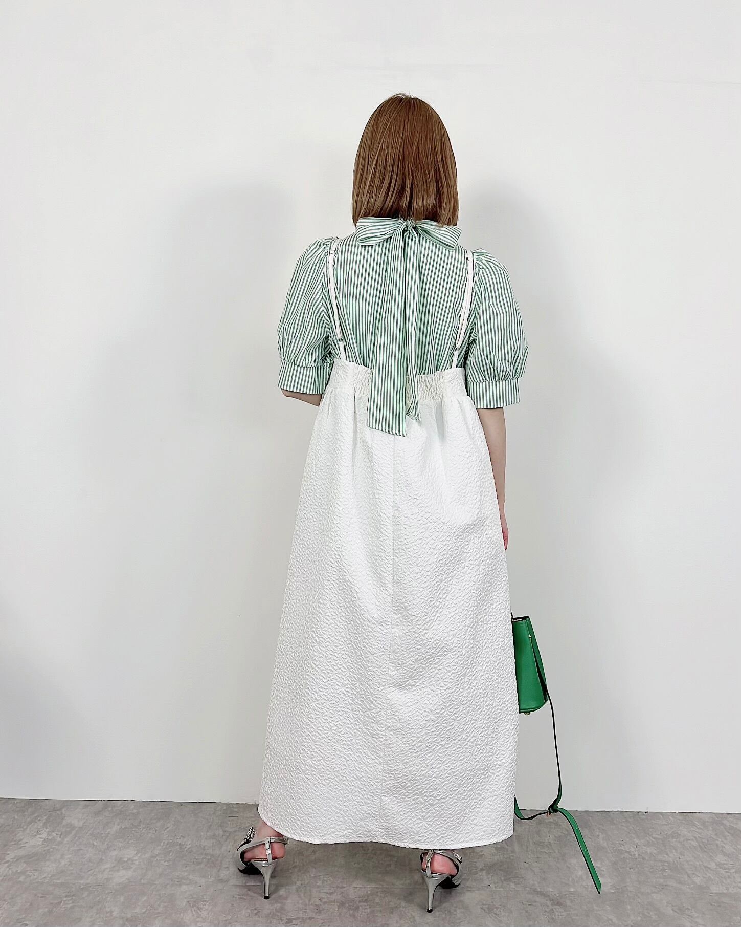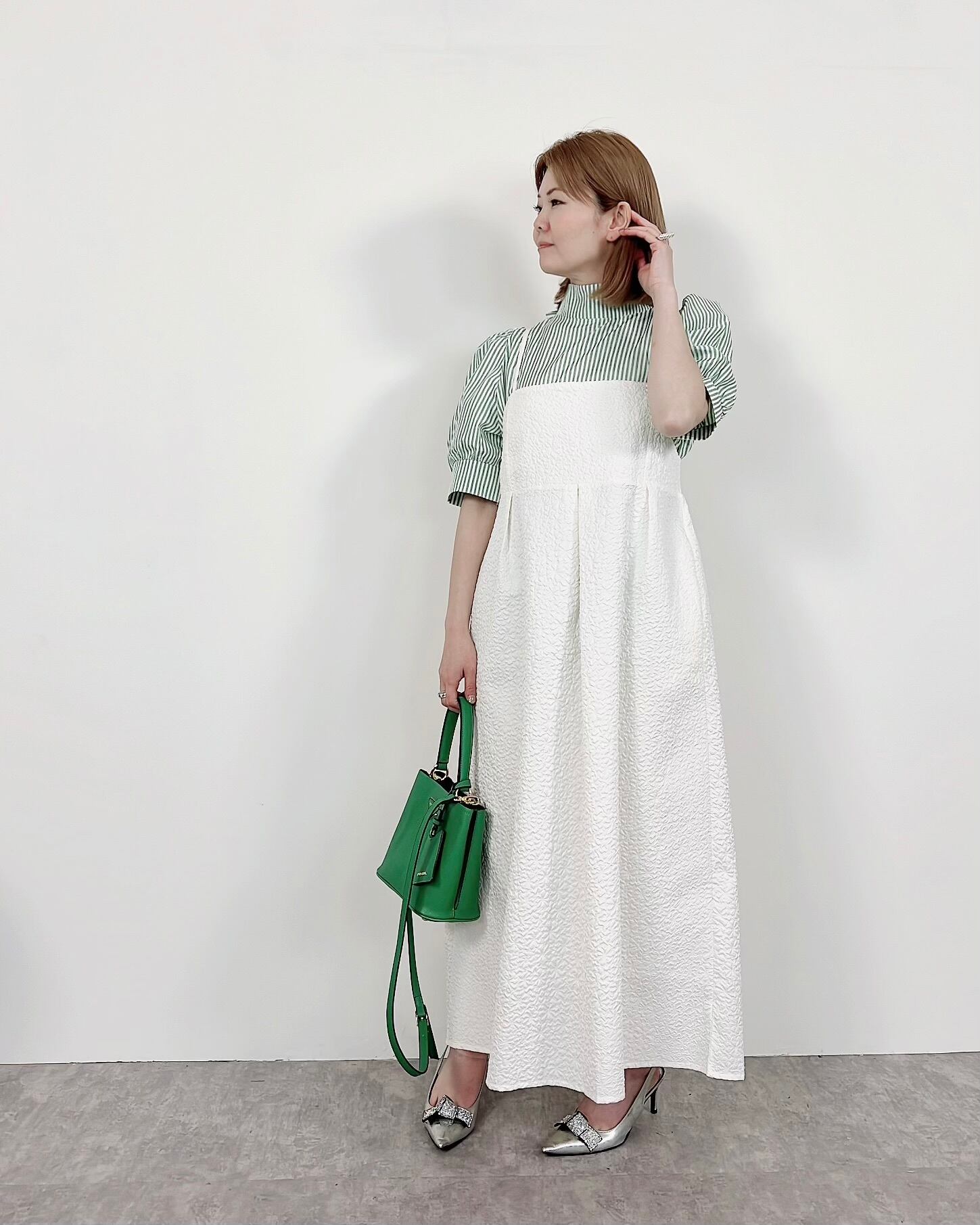 ポコポコした立体的なジャガード柄が印象的なキャミワンピースです。