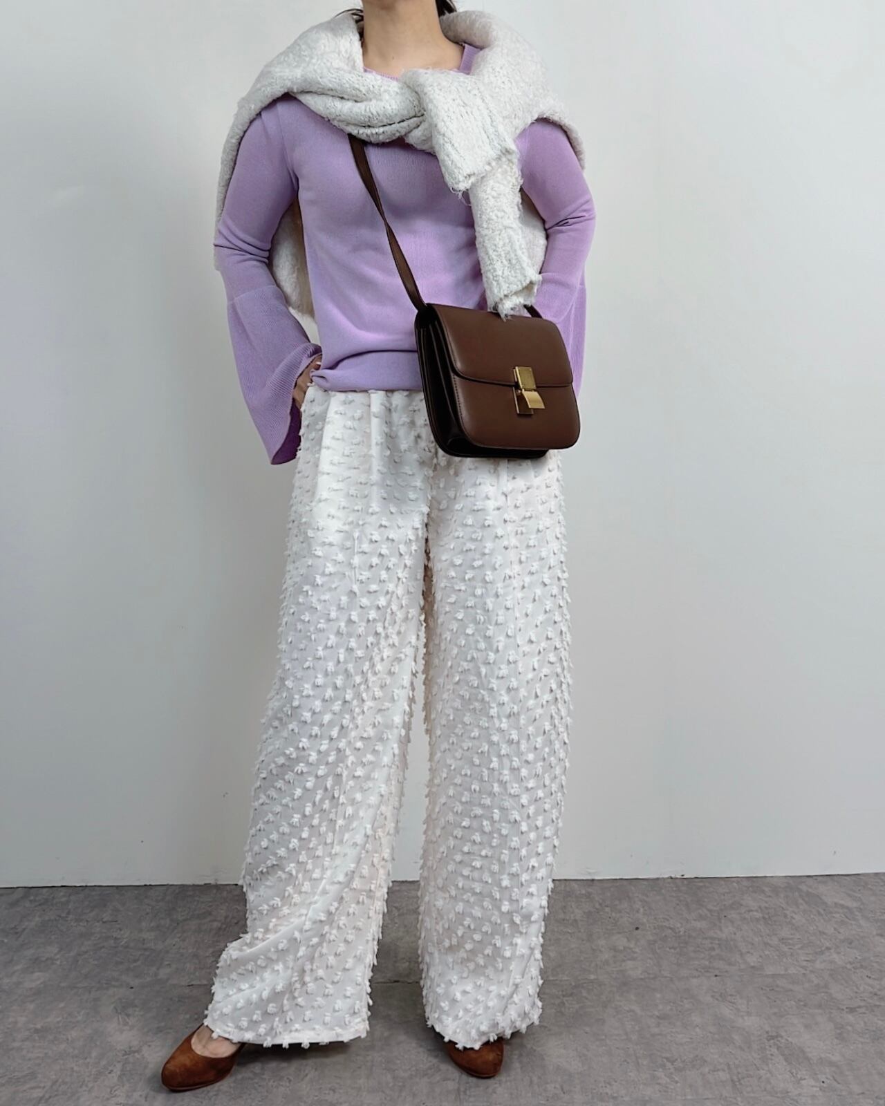 袖がフレアになっているので女性らしさが際立つデザインです。
