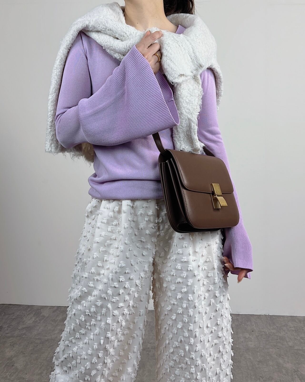 透け感のある編地で、これからの季節にレイヤードに重宝する一着。