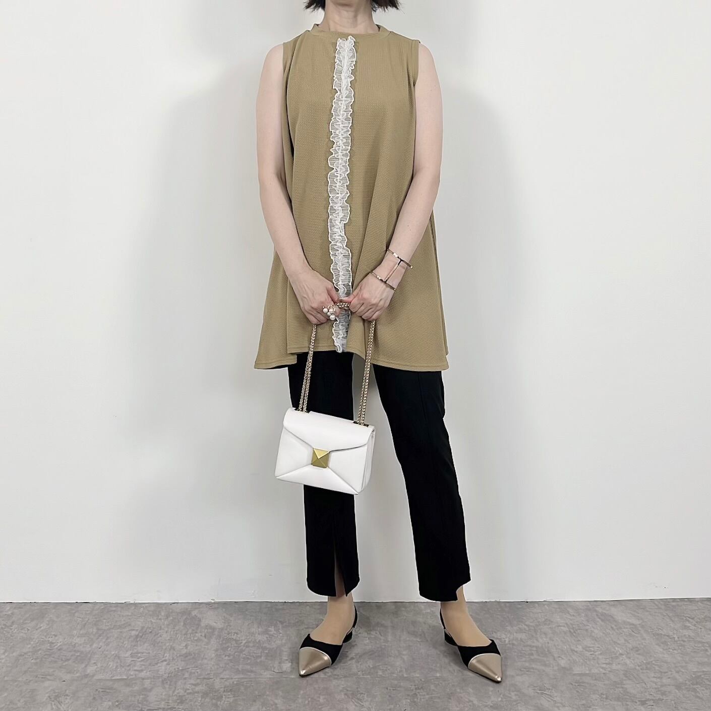 センターフリルがオシャレなAライントップスです。