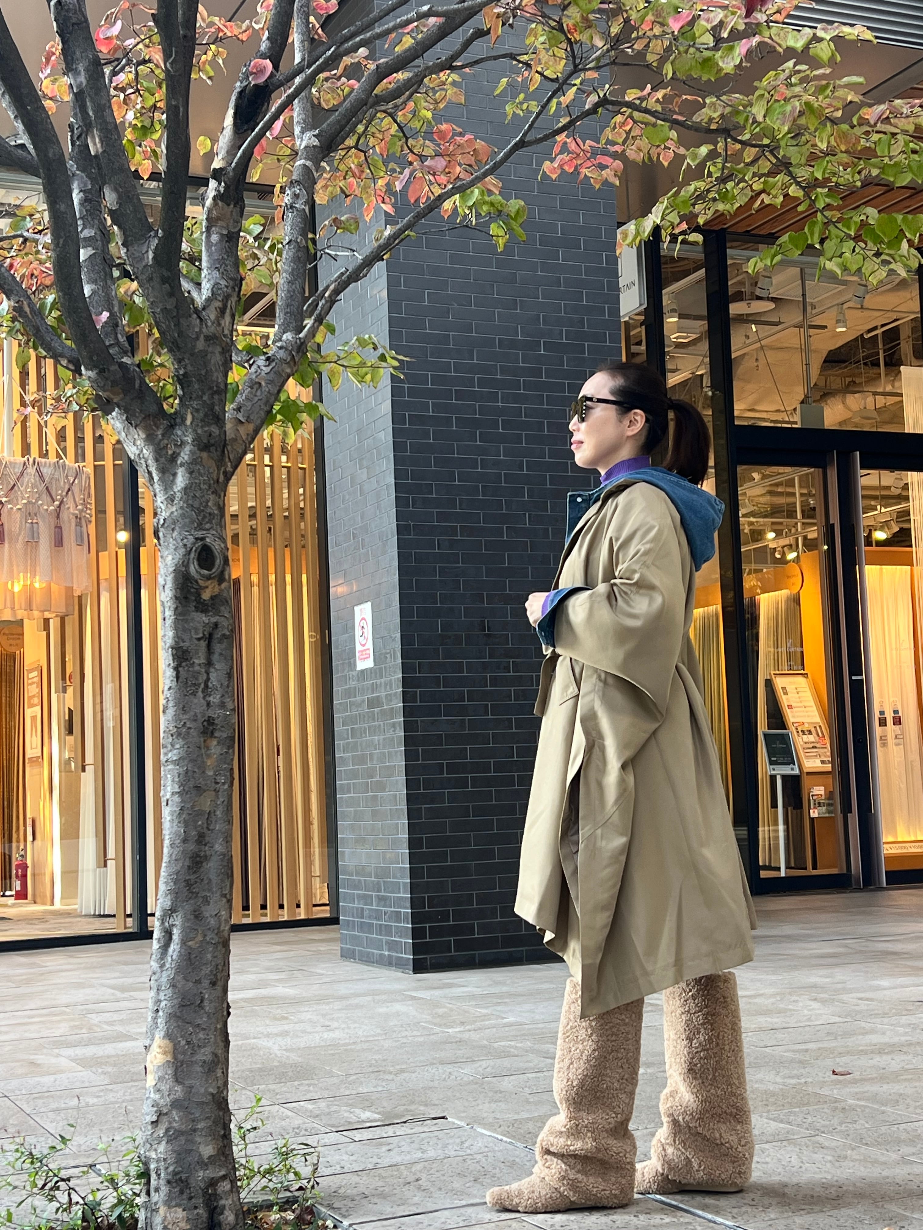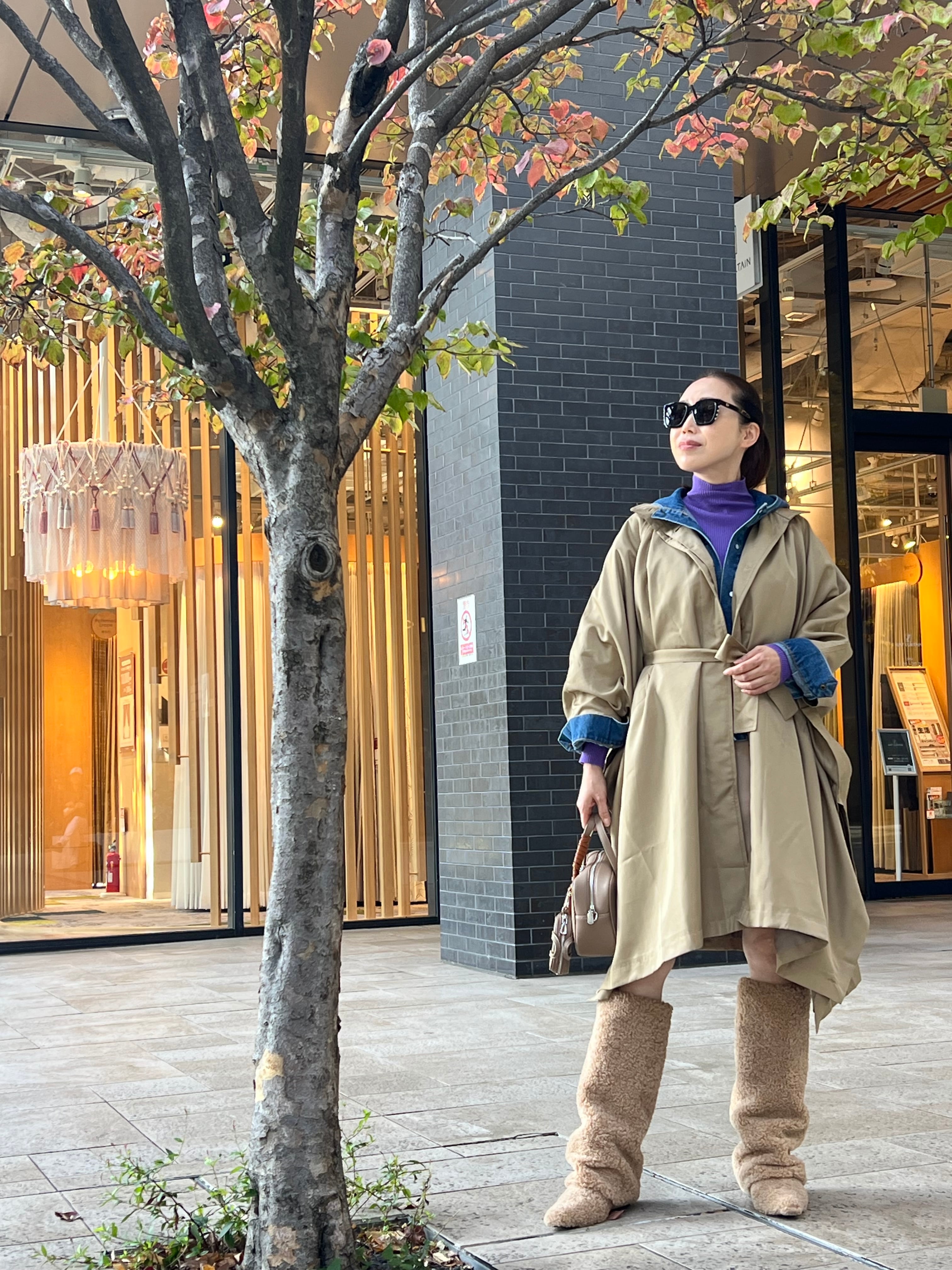 コートを主役にスタイリングをしても◎、体型カバーにもなり◎