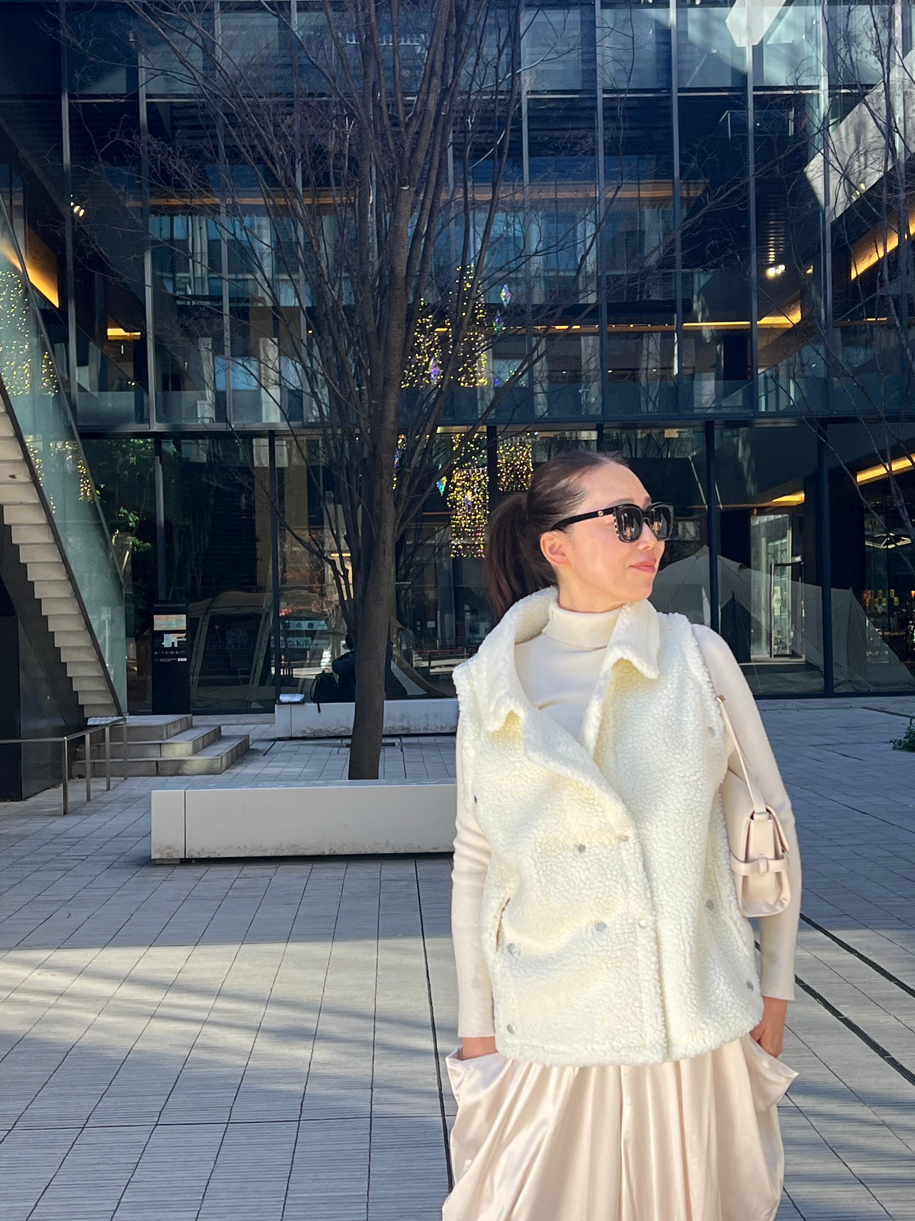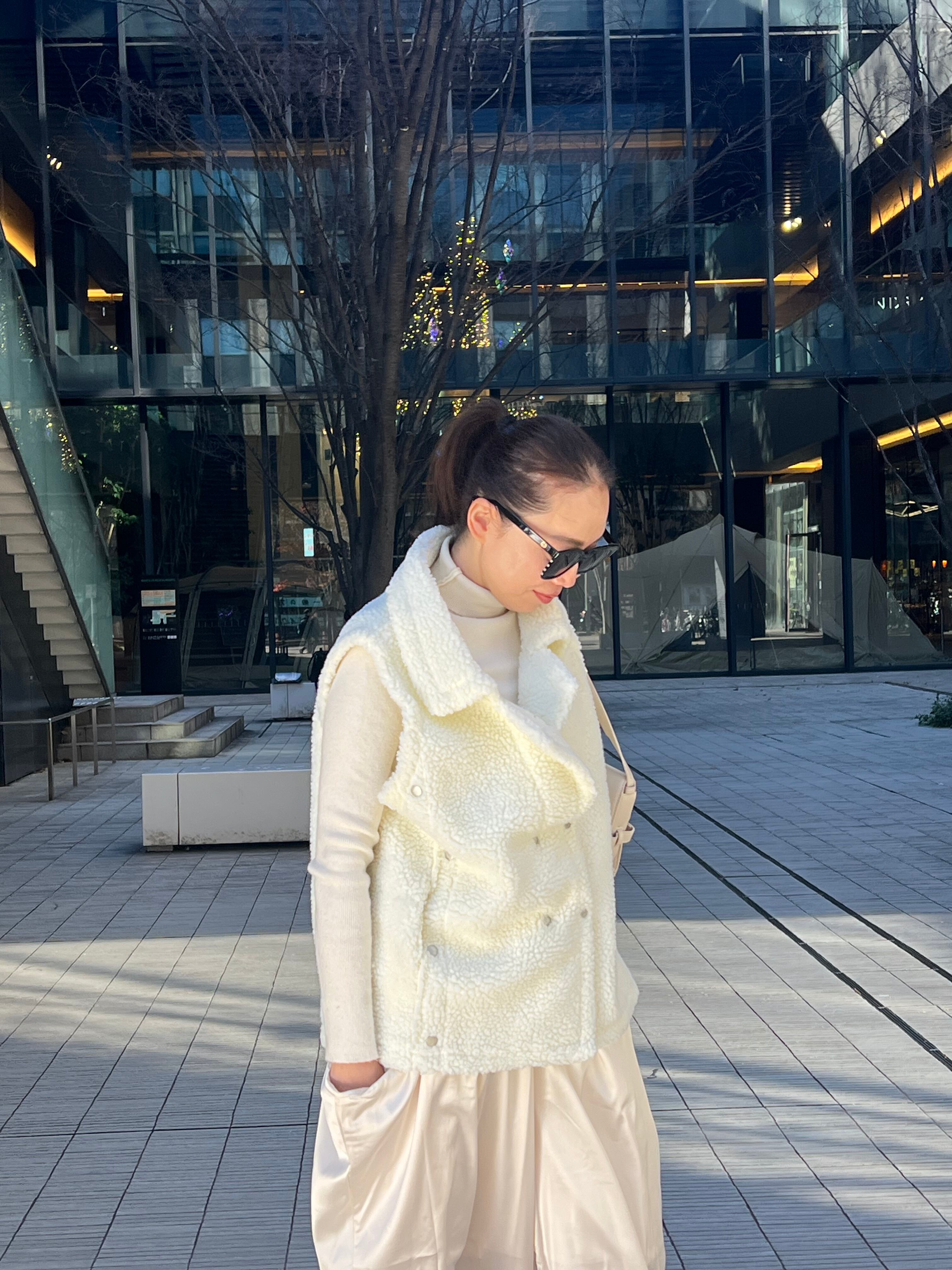 プードルの様なボアが可愛いテーラードダブルベストです。