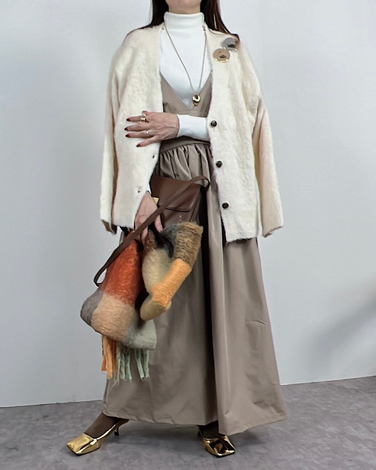 モヘアタッチの風合いで今季らしいこなれ感を演出。