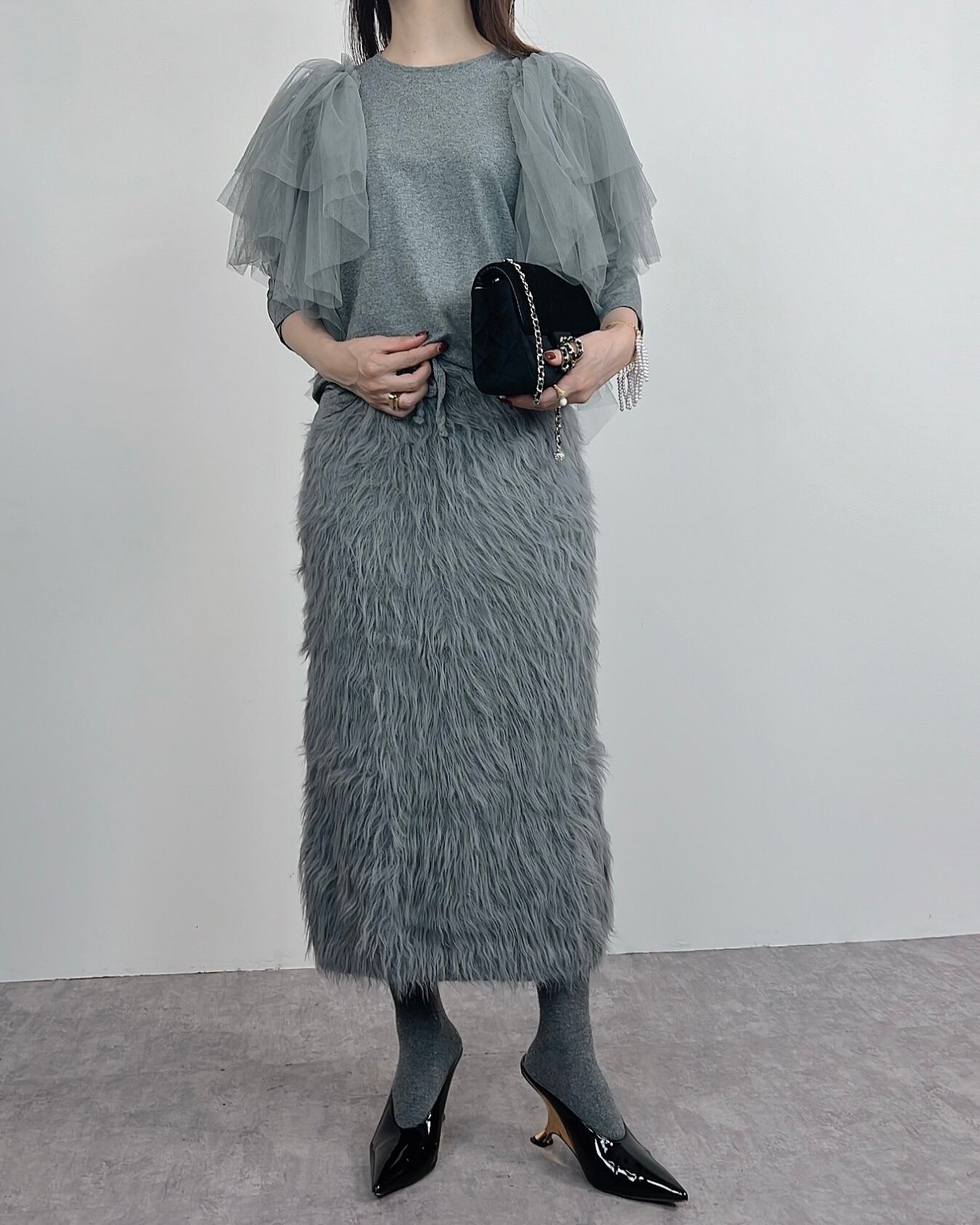 シャギーが素敵なニットスカートです。
