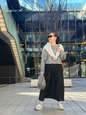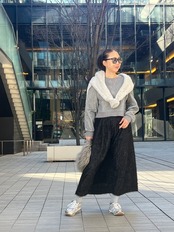 ラメフリンジジャガードが印象的で、合わせやすいカラーで、ちょうどいい抜け感を演出できる今シーズンの必須アイテムです。