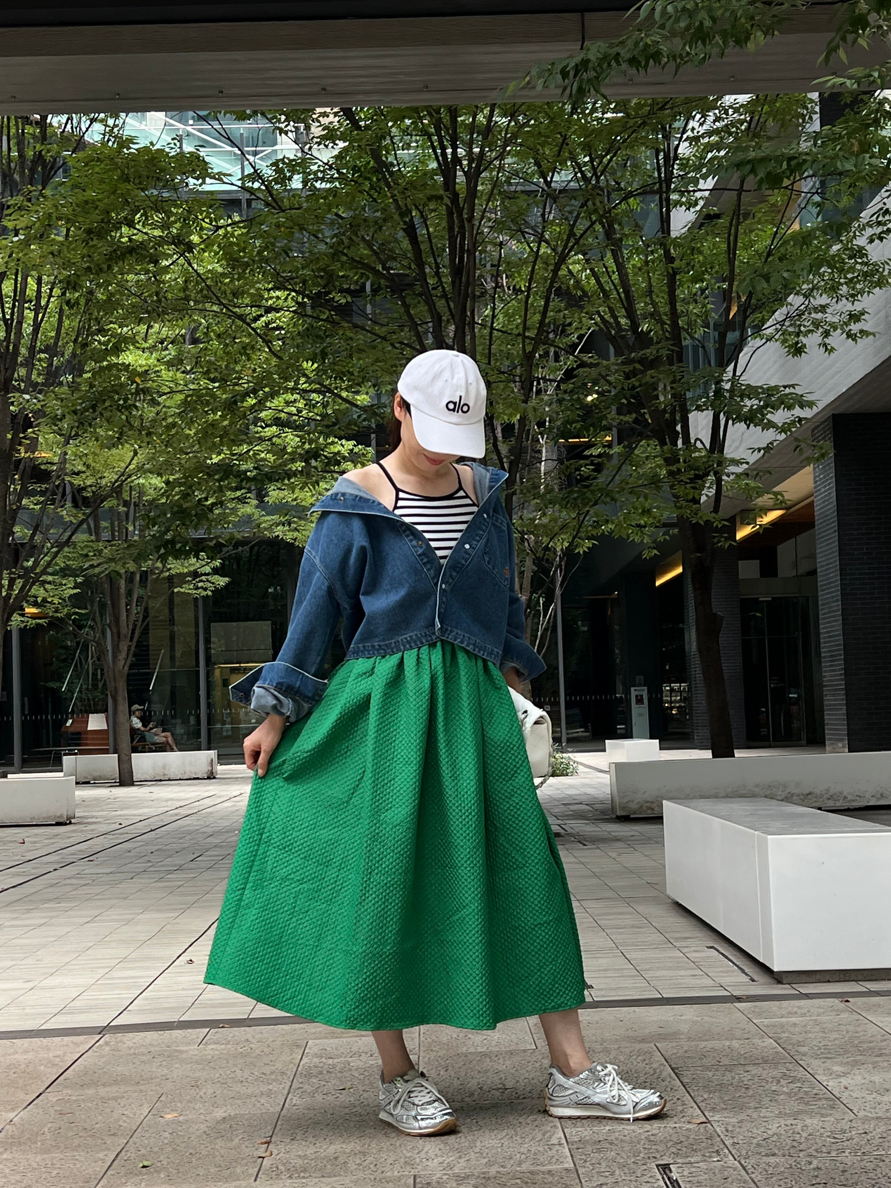 ゴムは後ろ側のみに入っているので前部分はスッキリと見せつつゆったりと着用いただけるアイテムになっています。