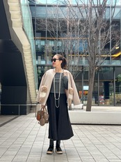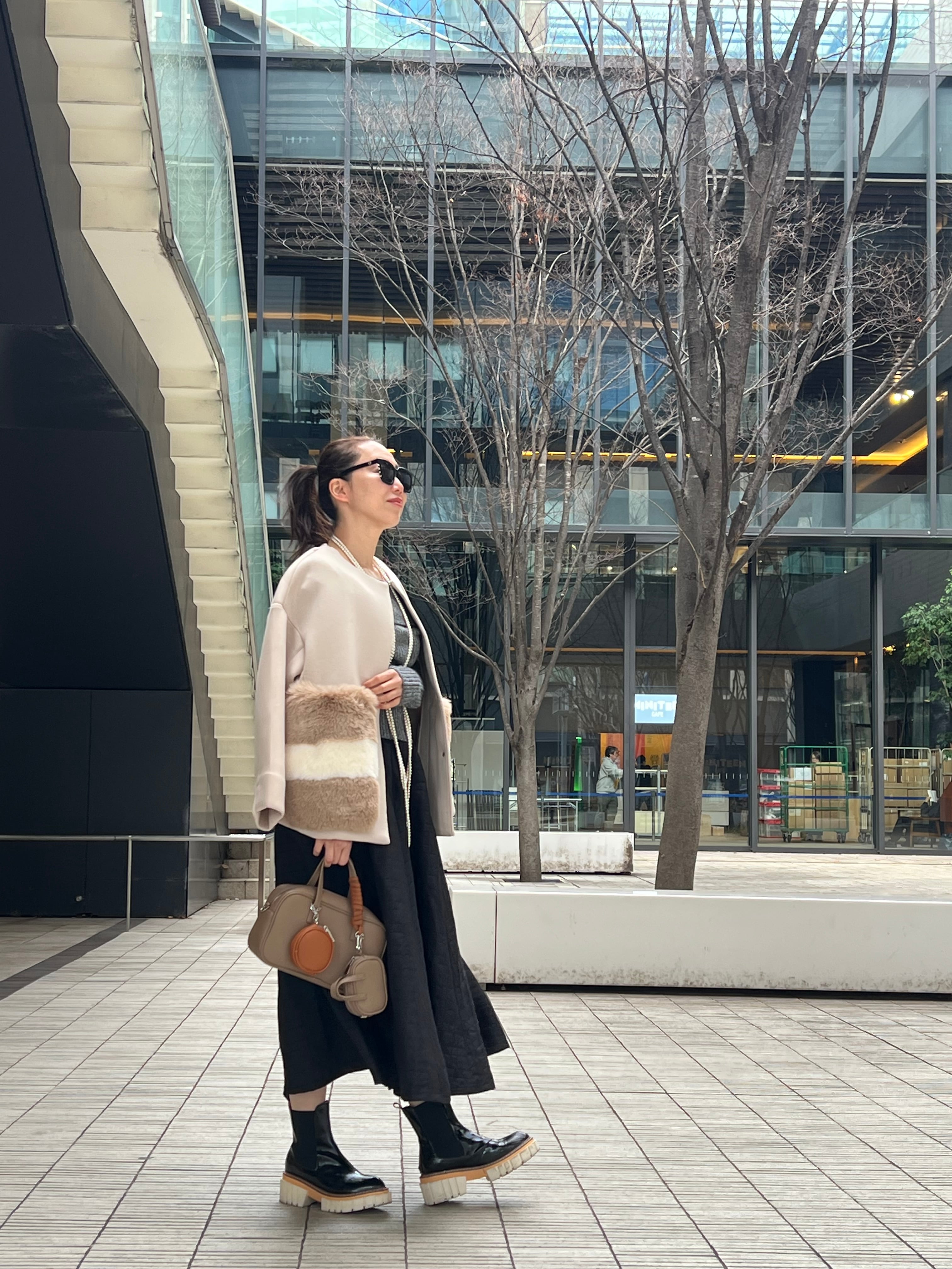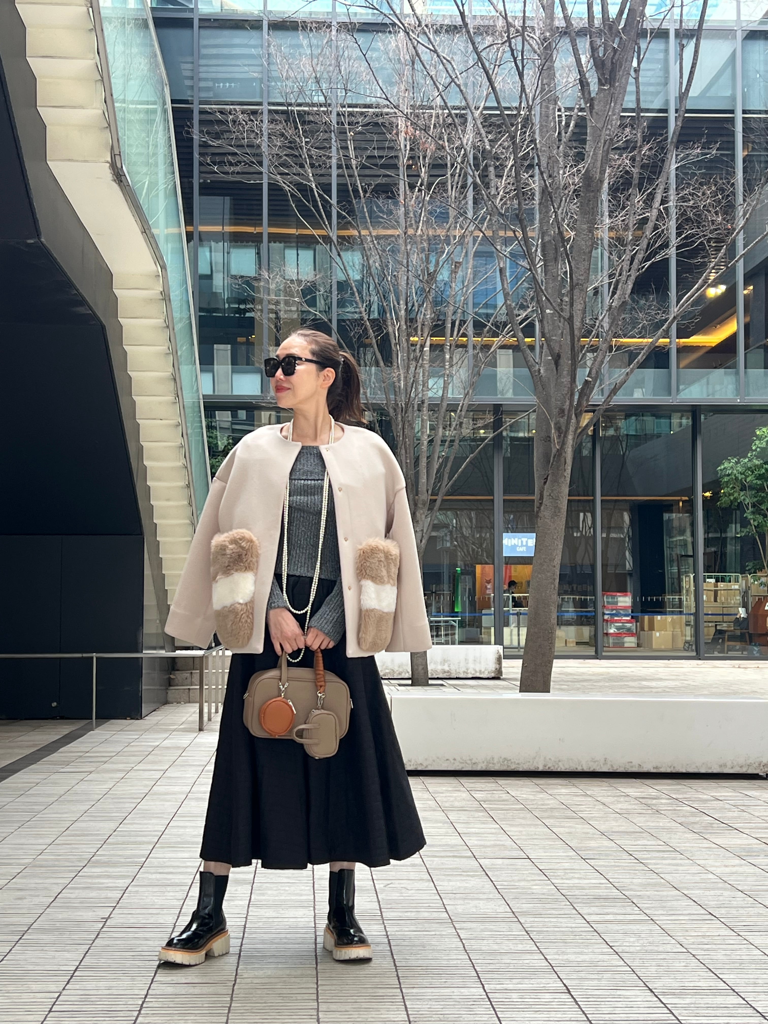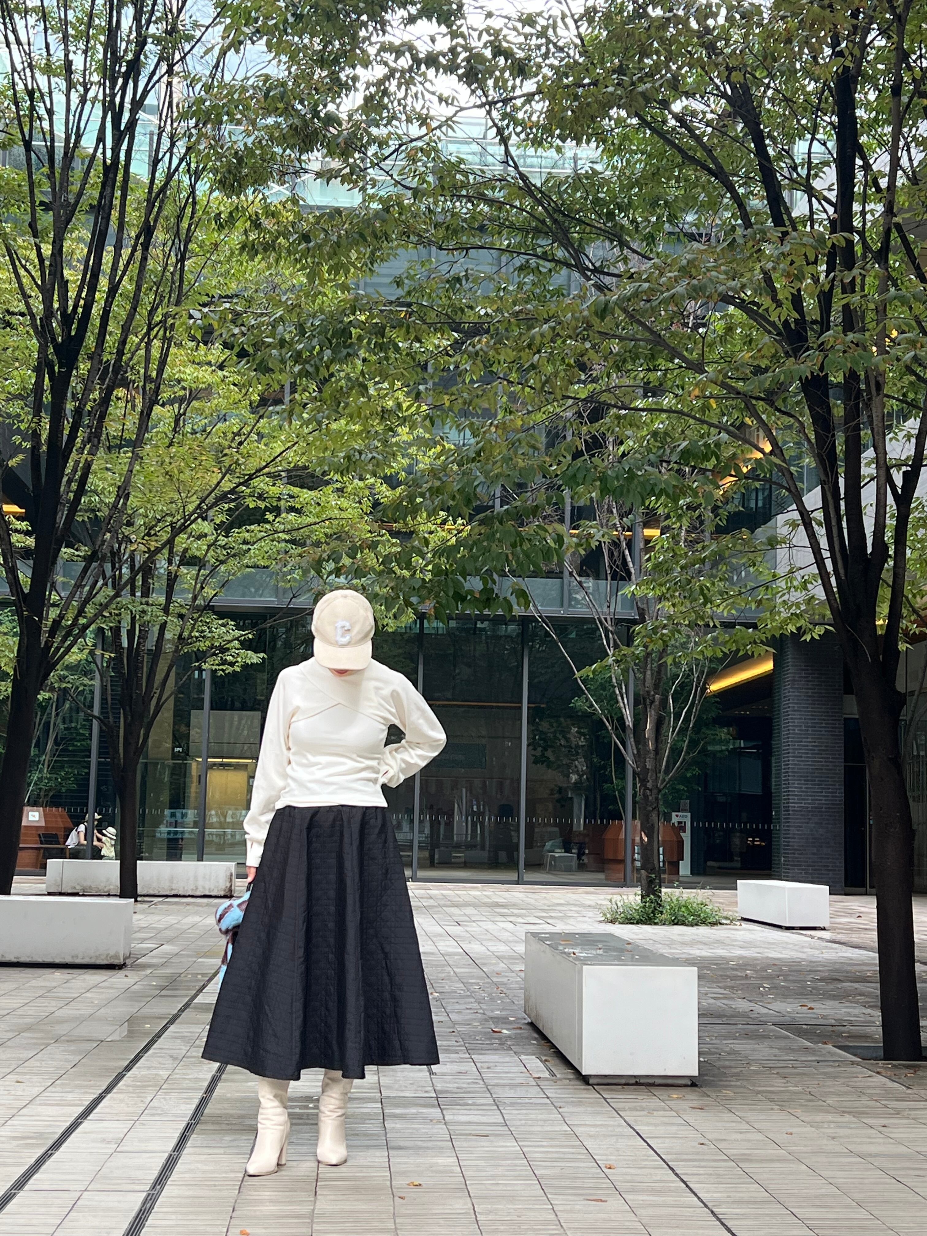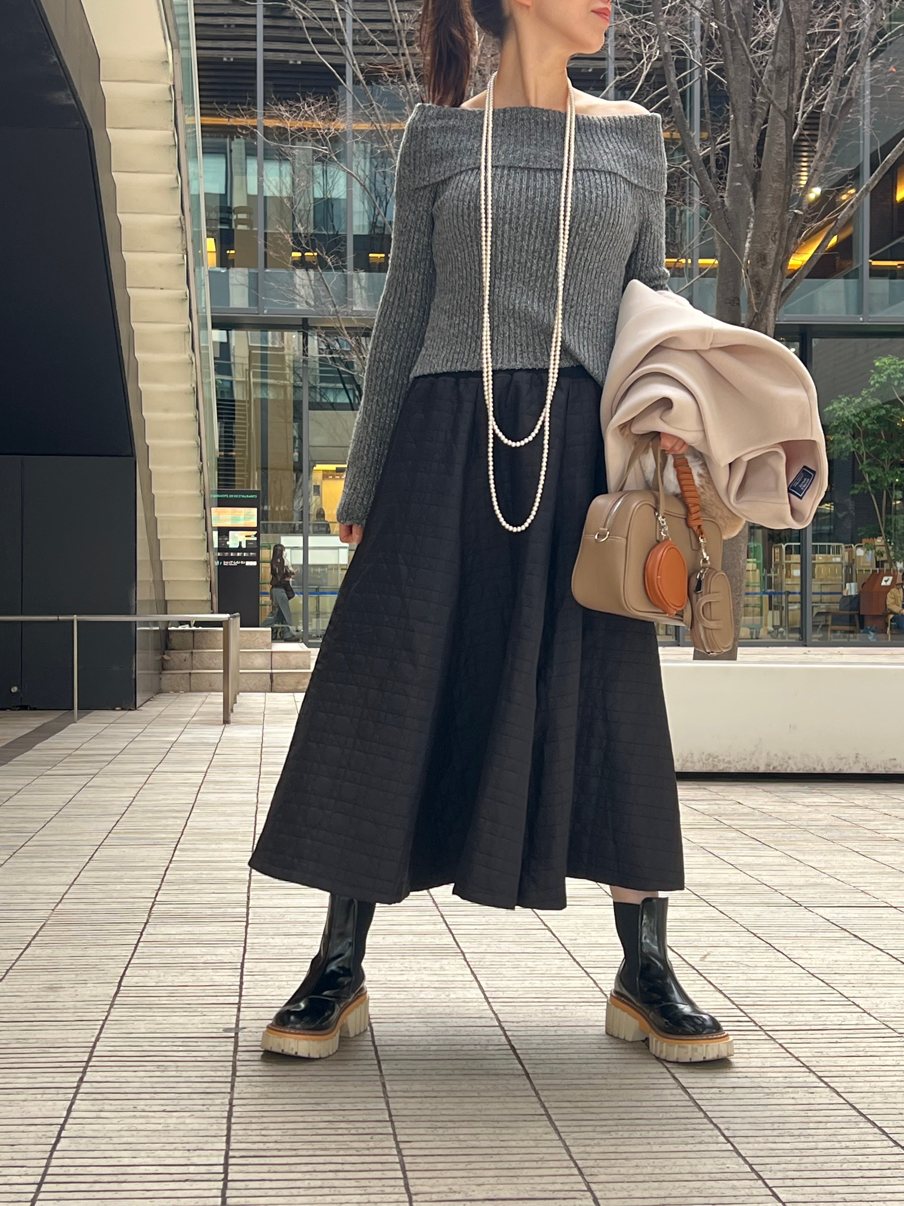 ウエストは楽チンなゴムのデザインフレアスカートです。