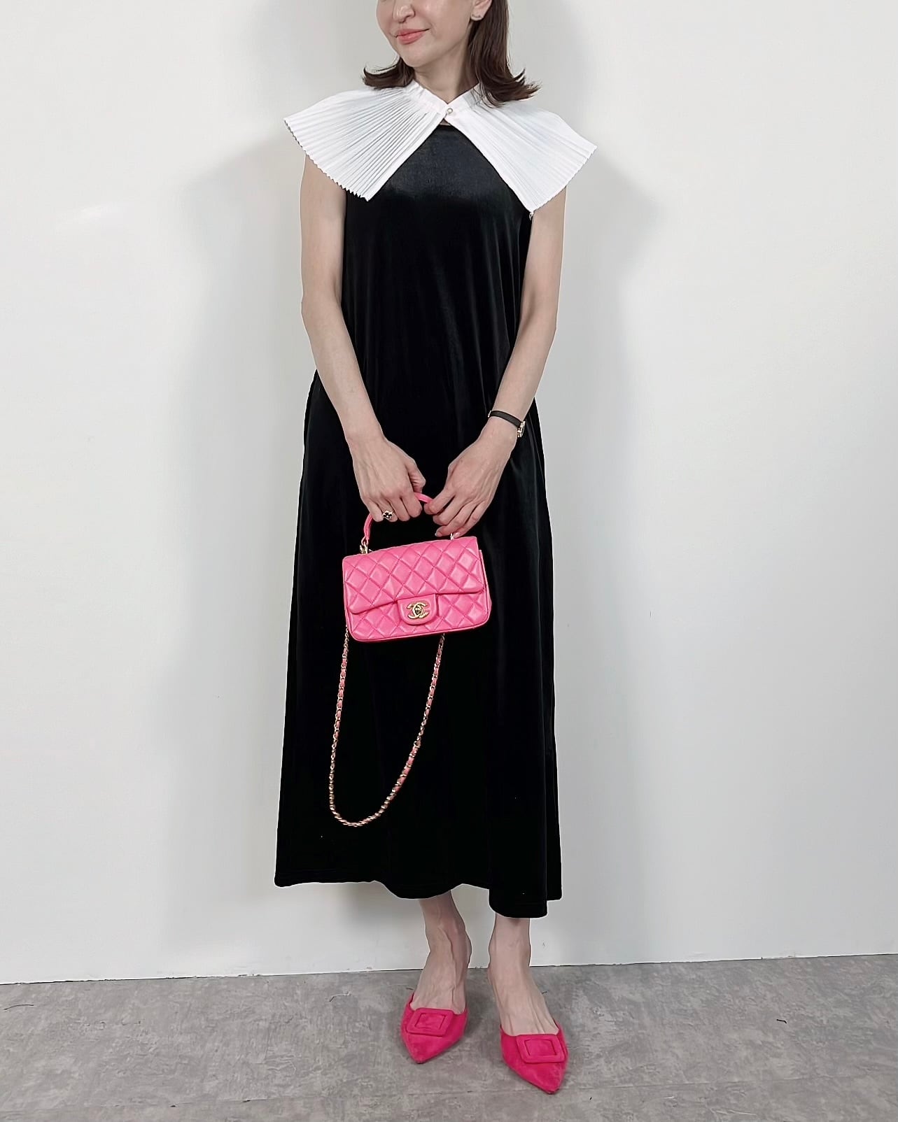 普通のタンクでは物足りないお洒落さんも満足のベロアのタンクワンピース。