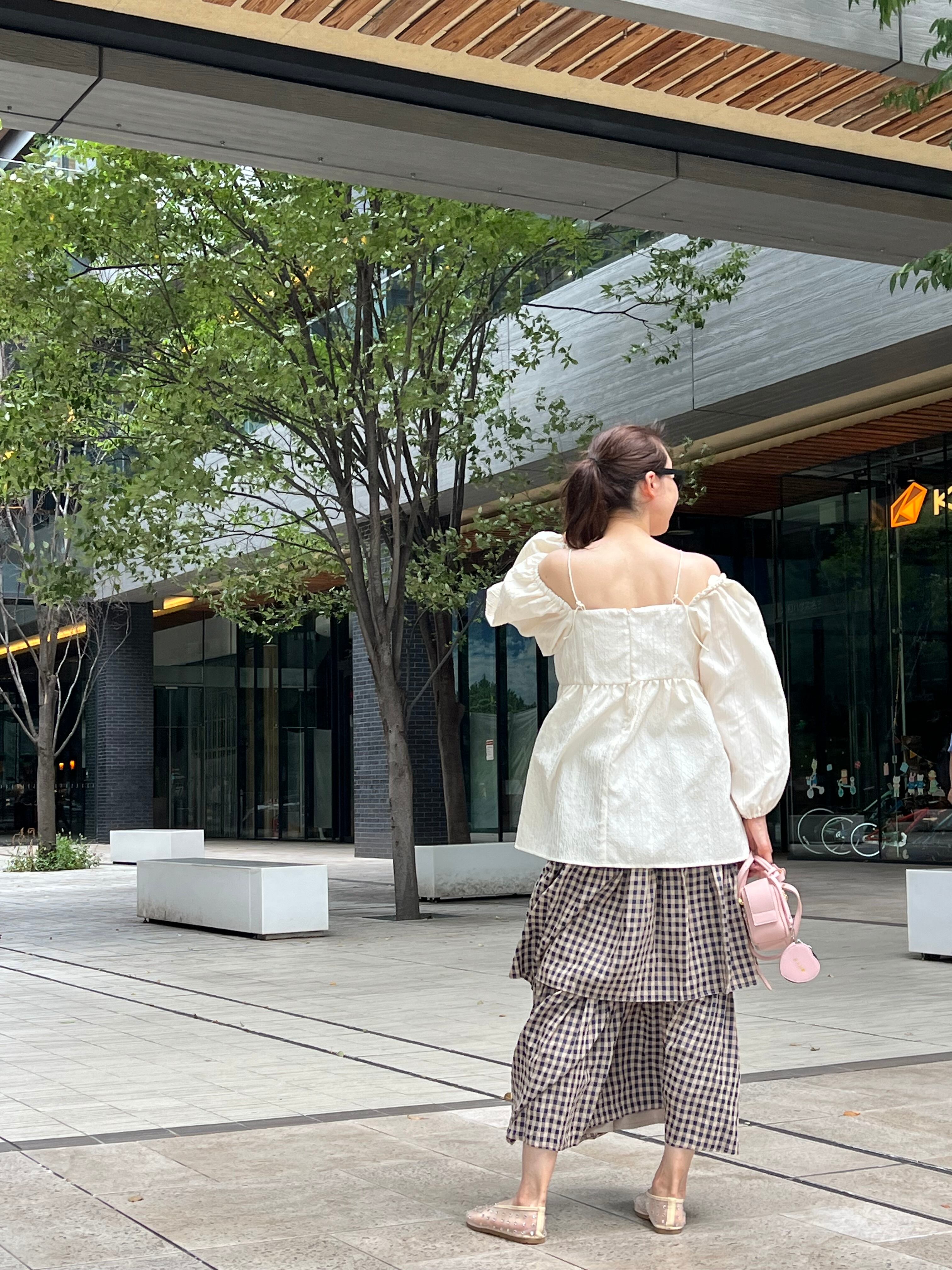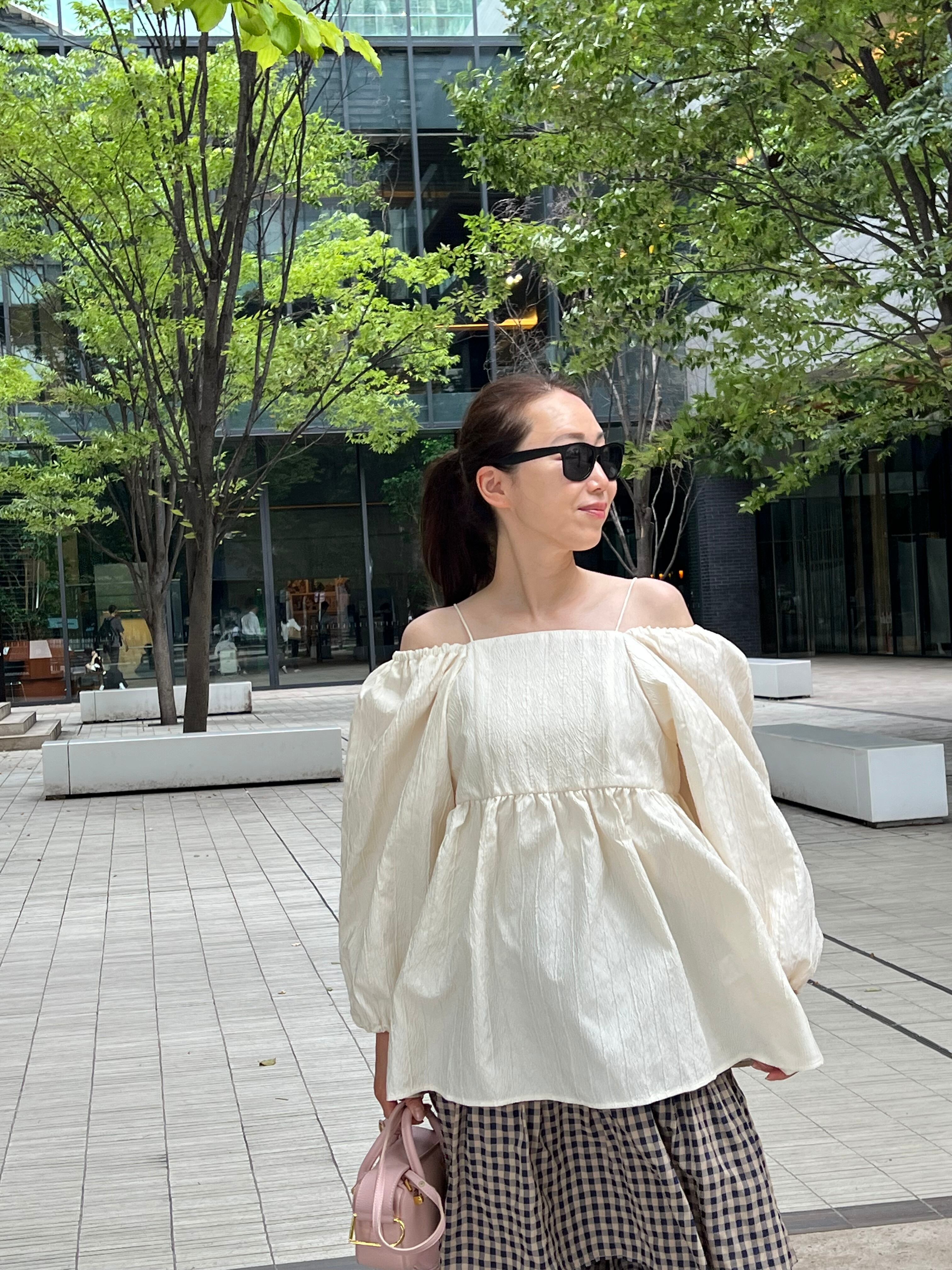 ふくれジャガードの2ウェイオフショルダートップスです。