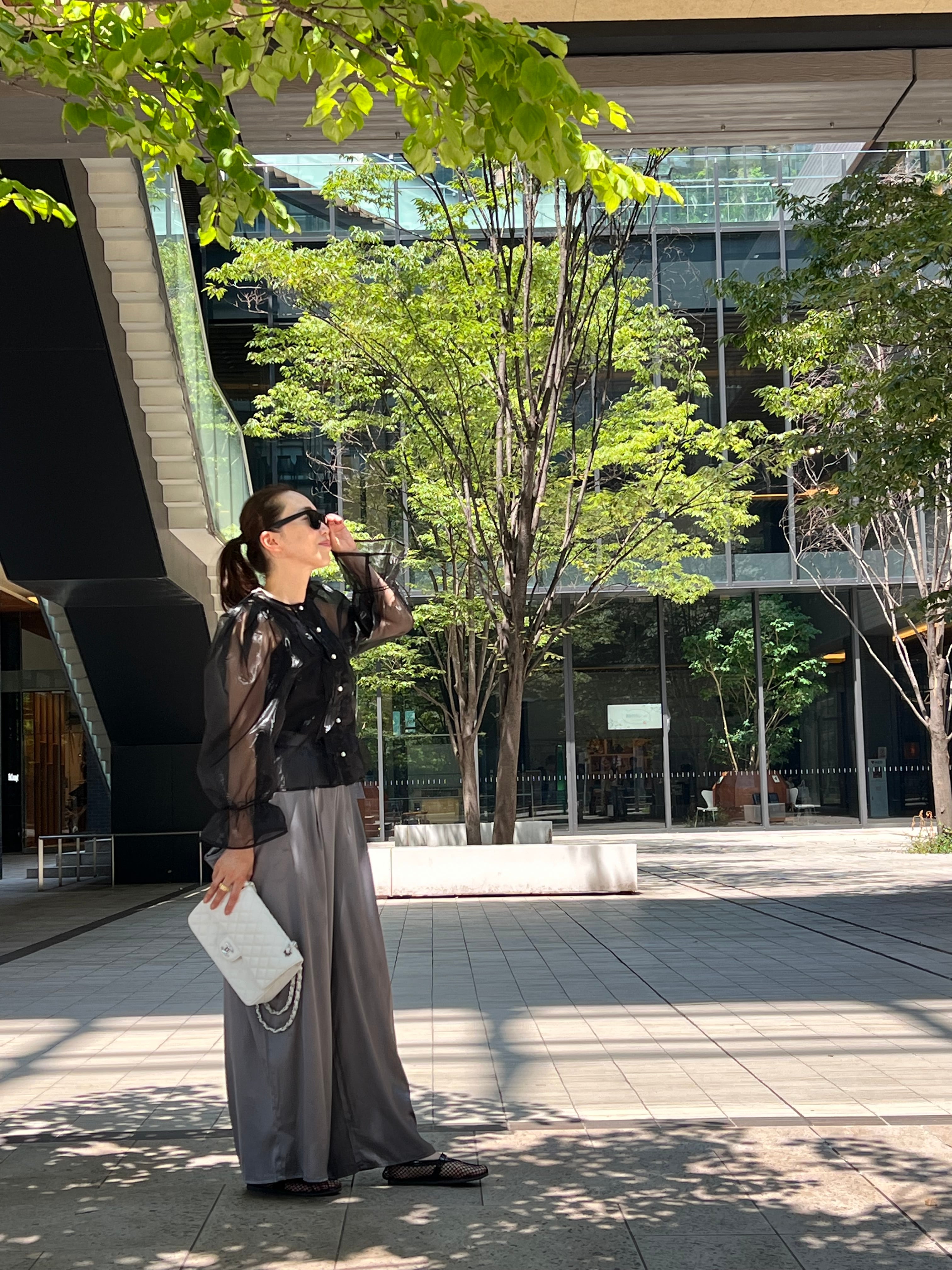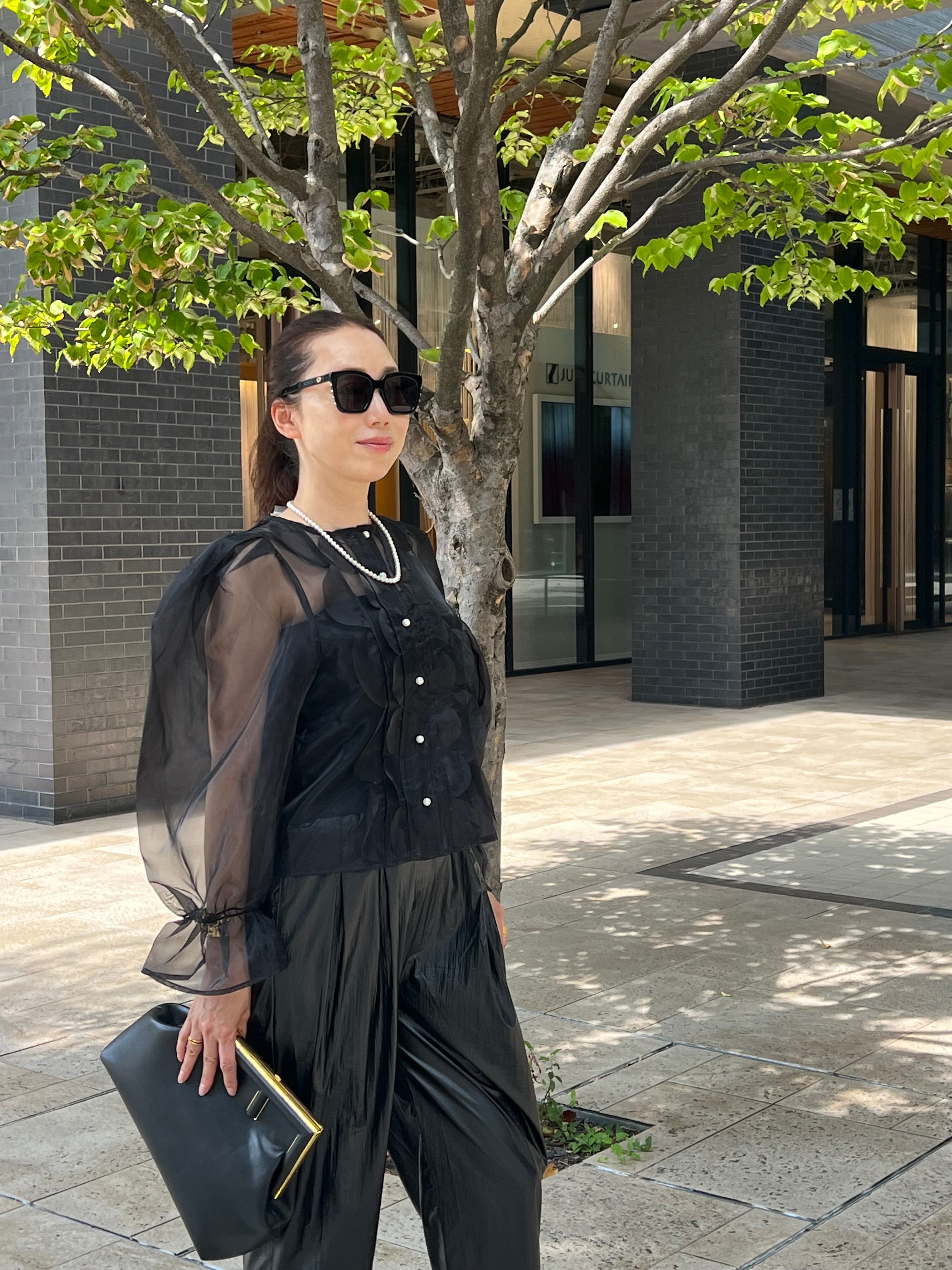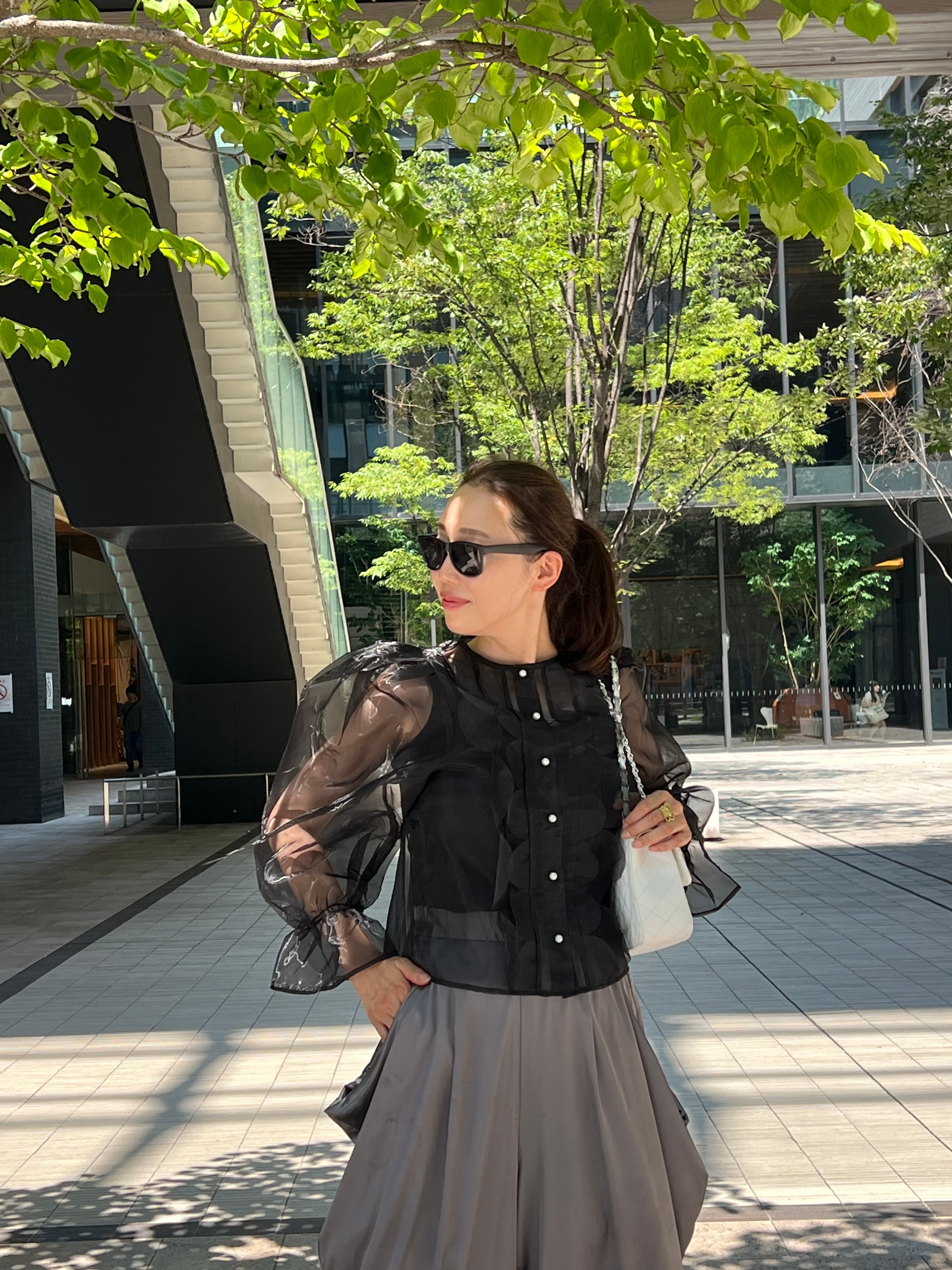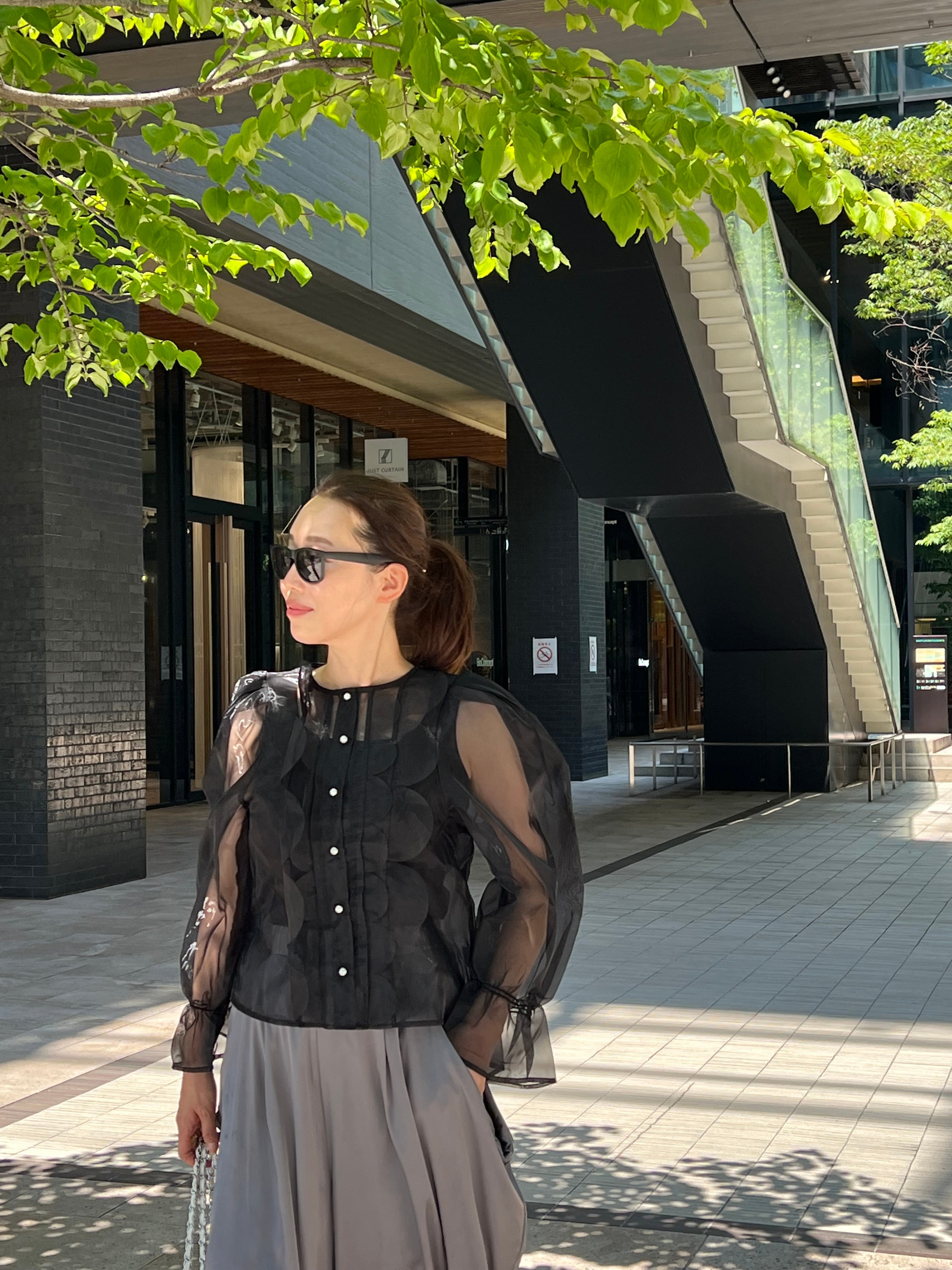 シアーが素敵なスカラップオーガンジーブラウスです。