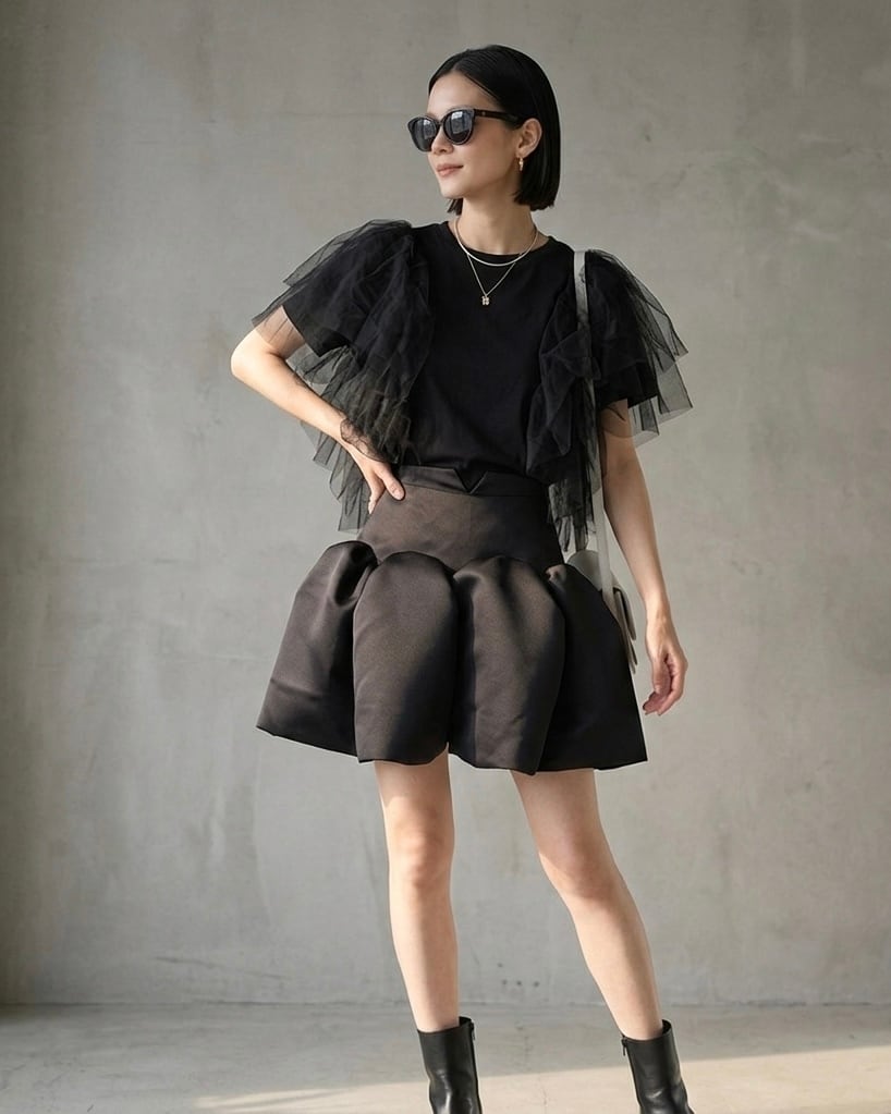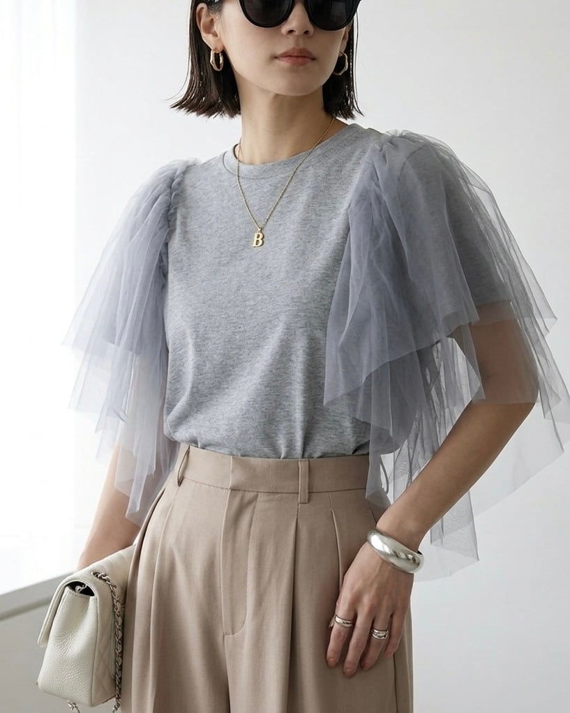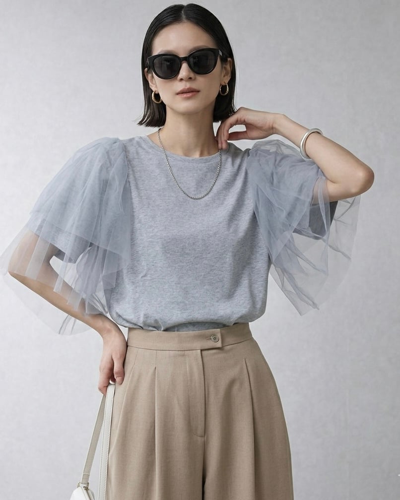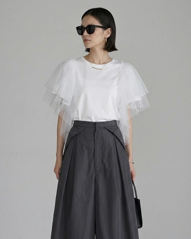 ショルダーに付いたチュール素敵なトップスです。