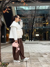 ショート丈なのでボリュームのあるボトムスと合わせやすいデザイン◎