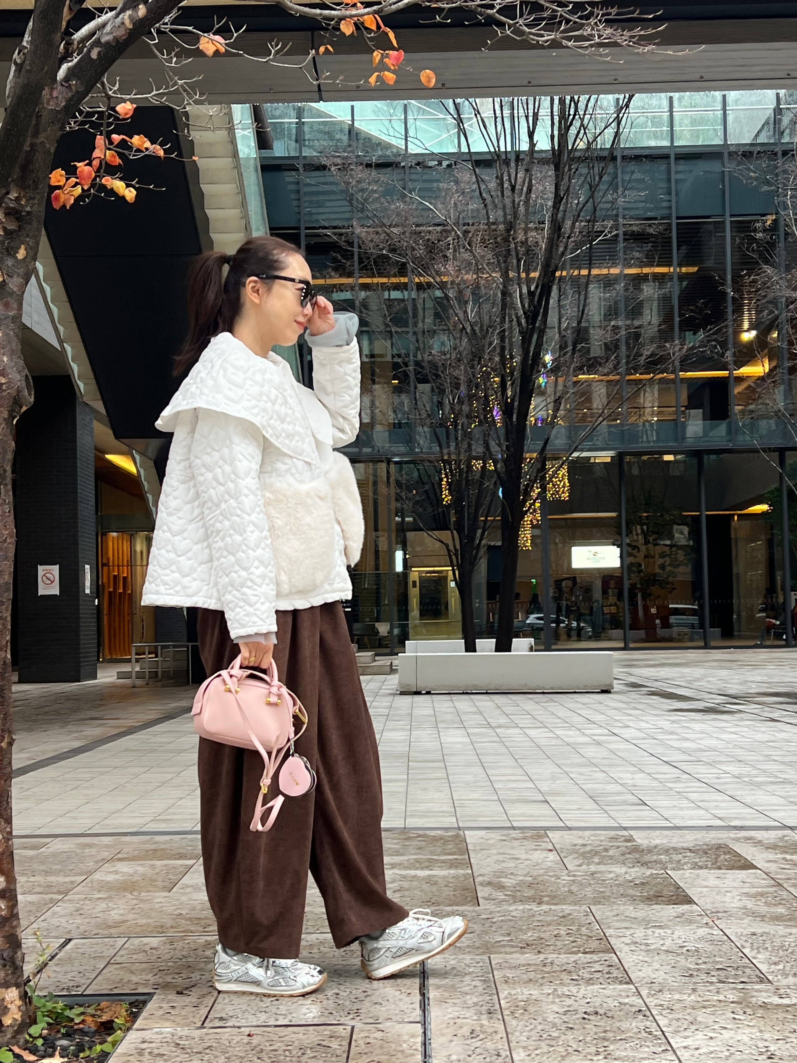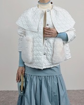 大きな襟とふんわりしたAラインにファーが付いて更にガーリーな印象に。
