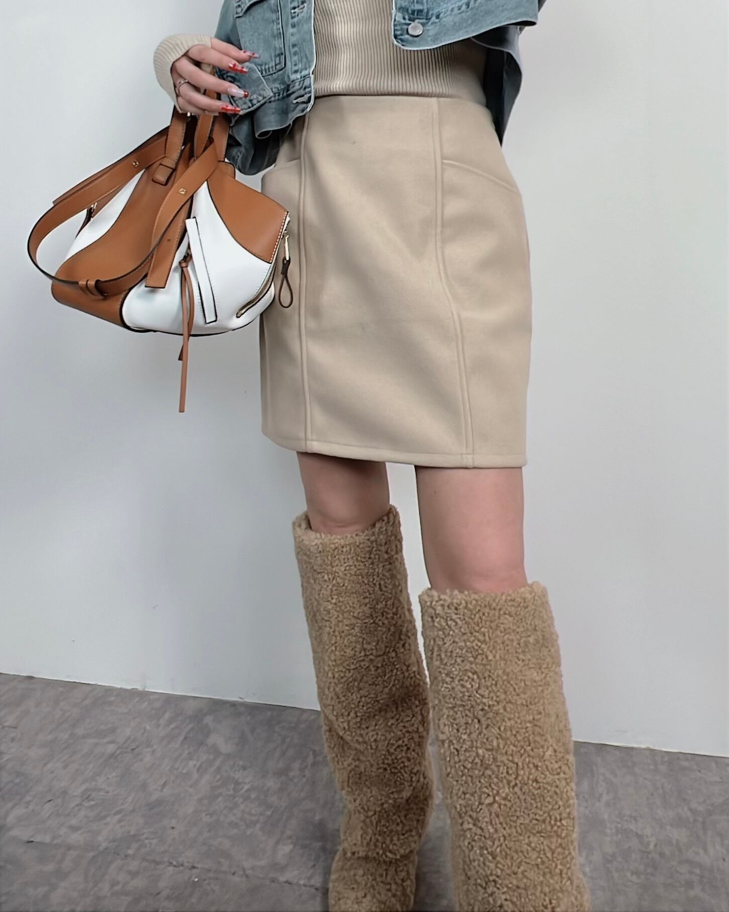 ブーツ合わせでトレンドコーデが楽しめる!ウールライク素材が大人可愛いミニスカート