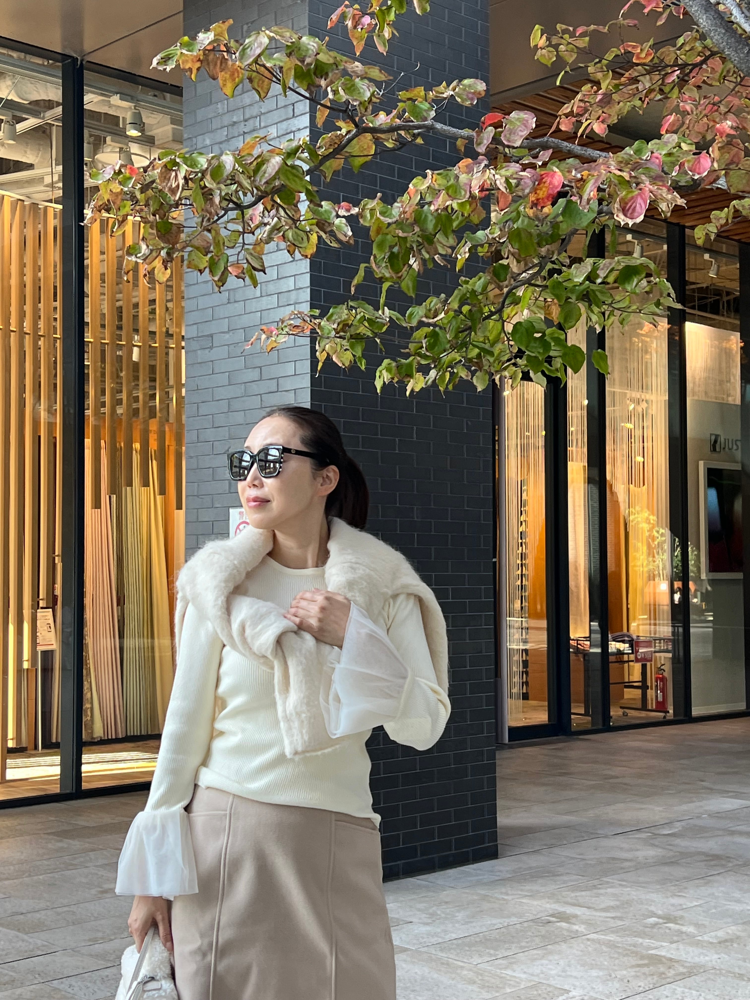 ふわっとフレアに広がるベルスリーブがポイントで手元を華やかに。