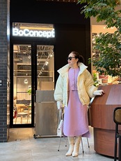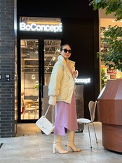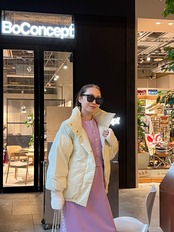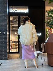 スタンドカラーがトレンドのスタイルに仕上げてくれるのがうれしいポイント◎