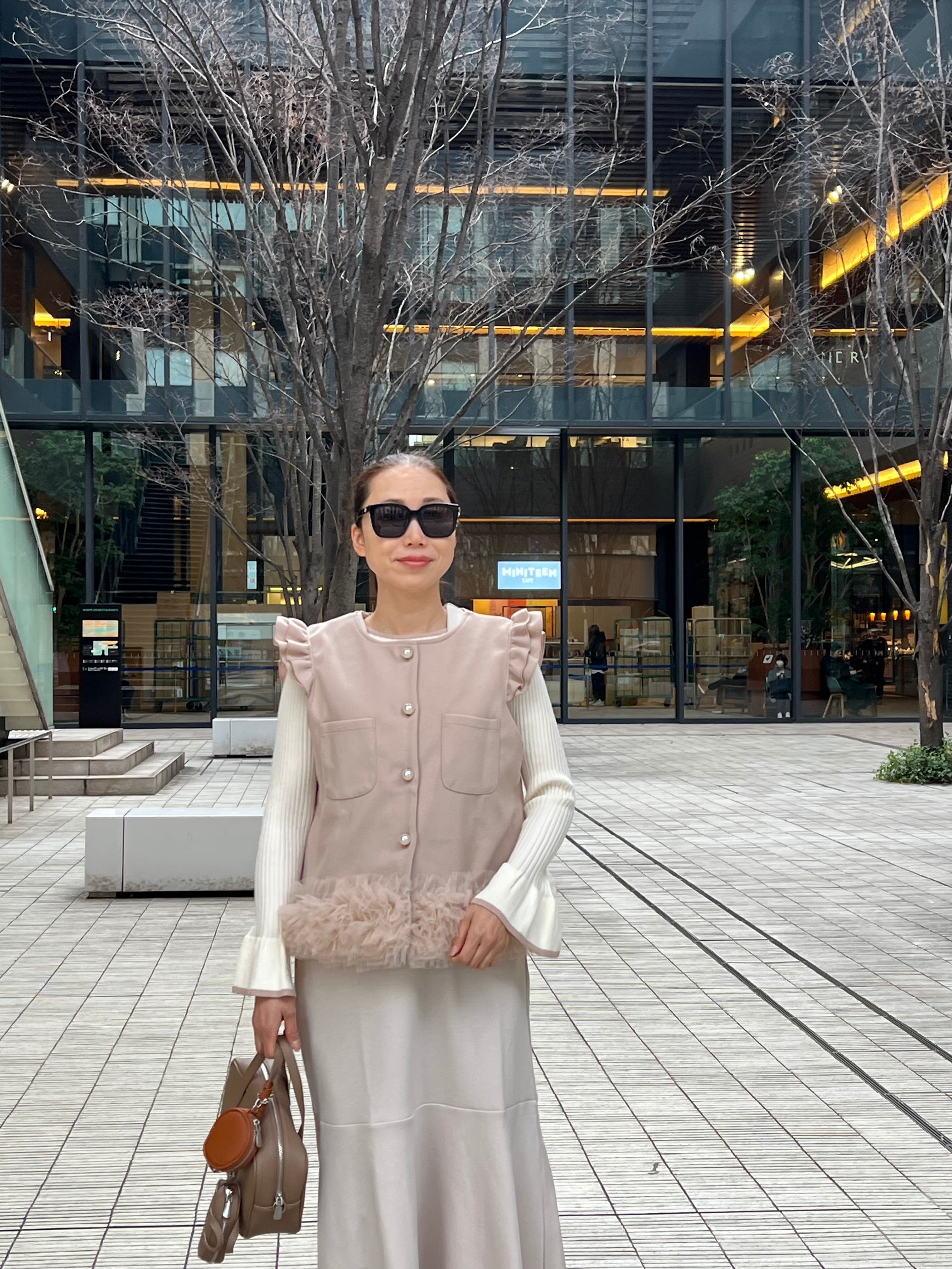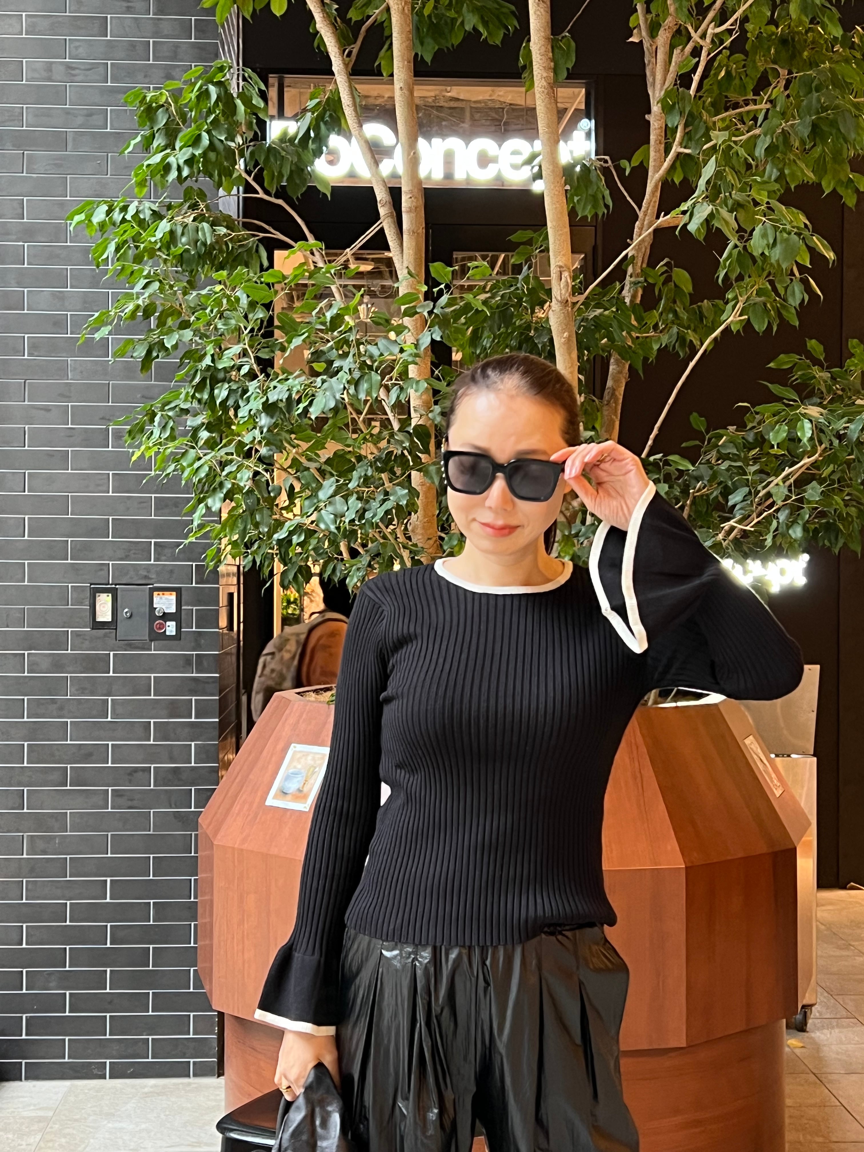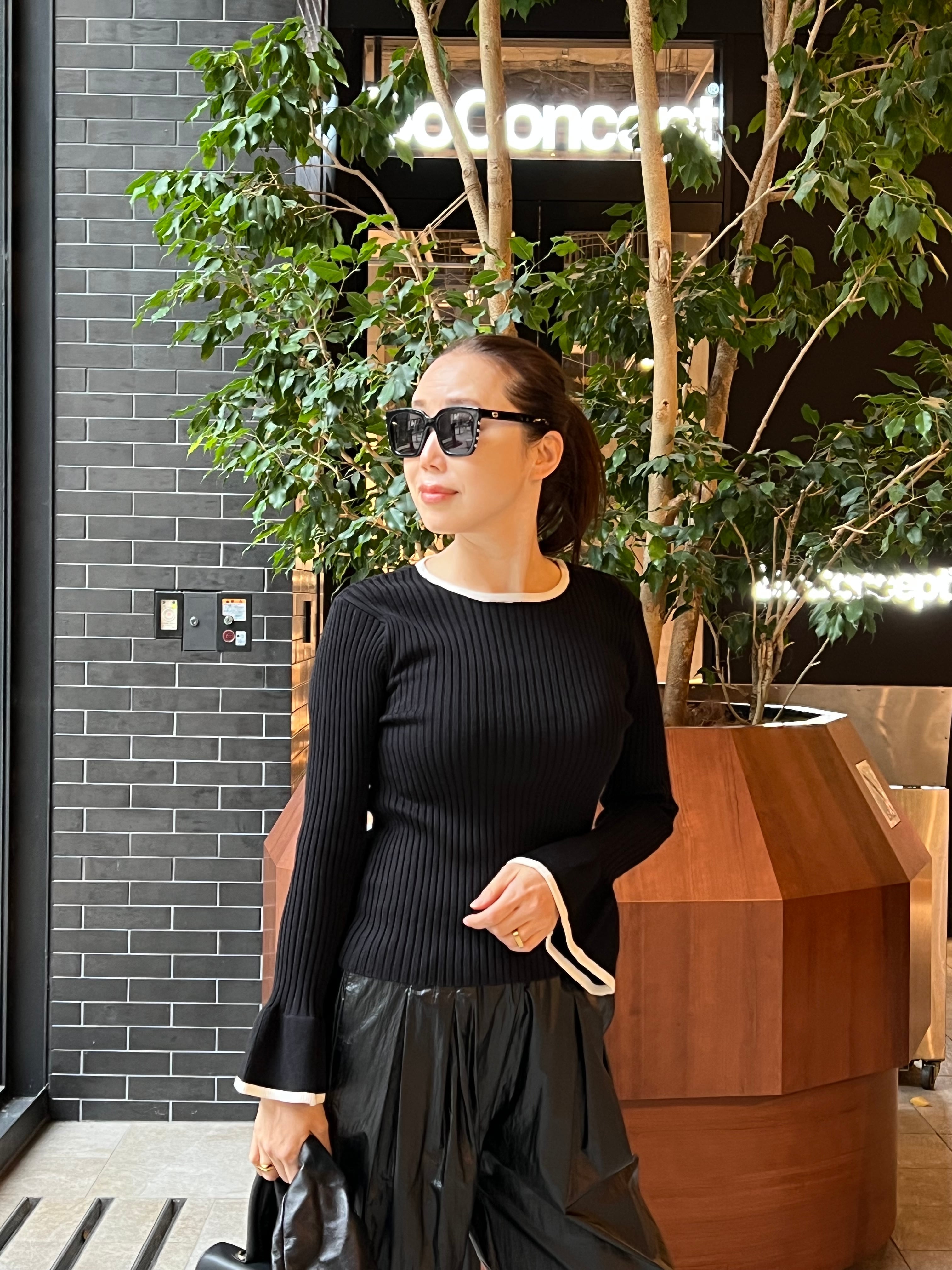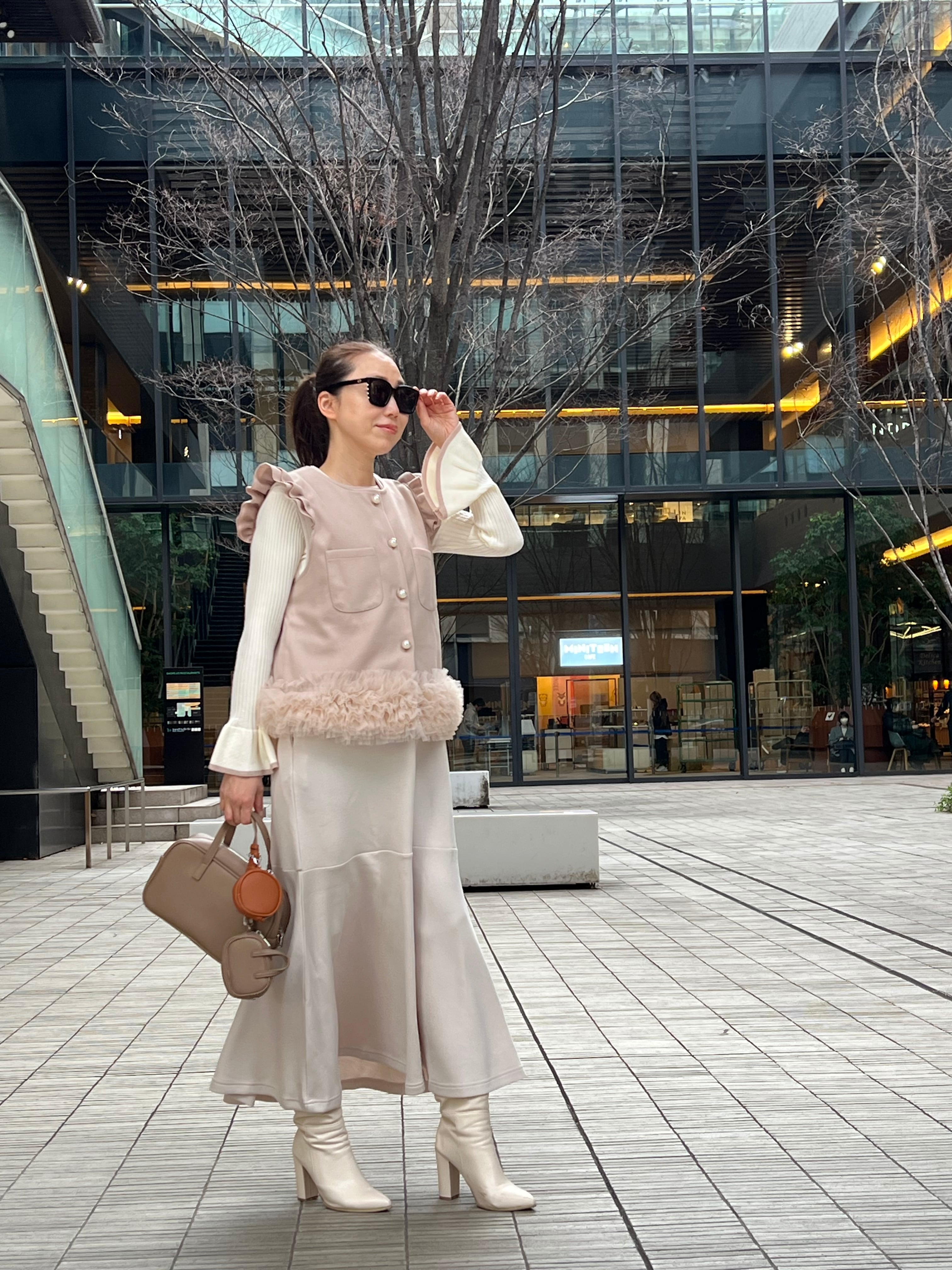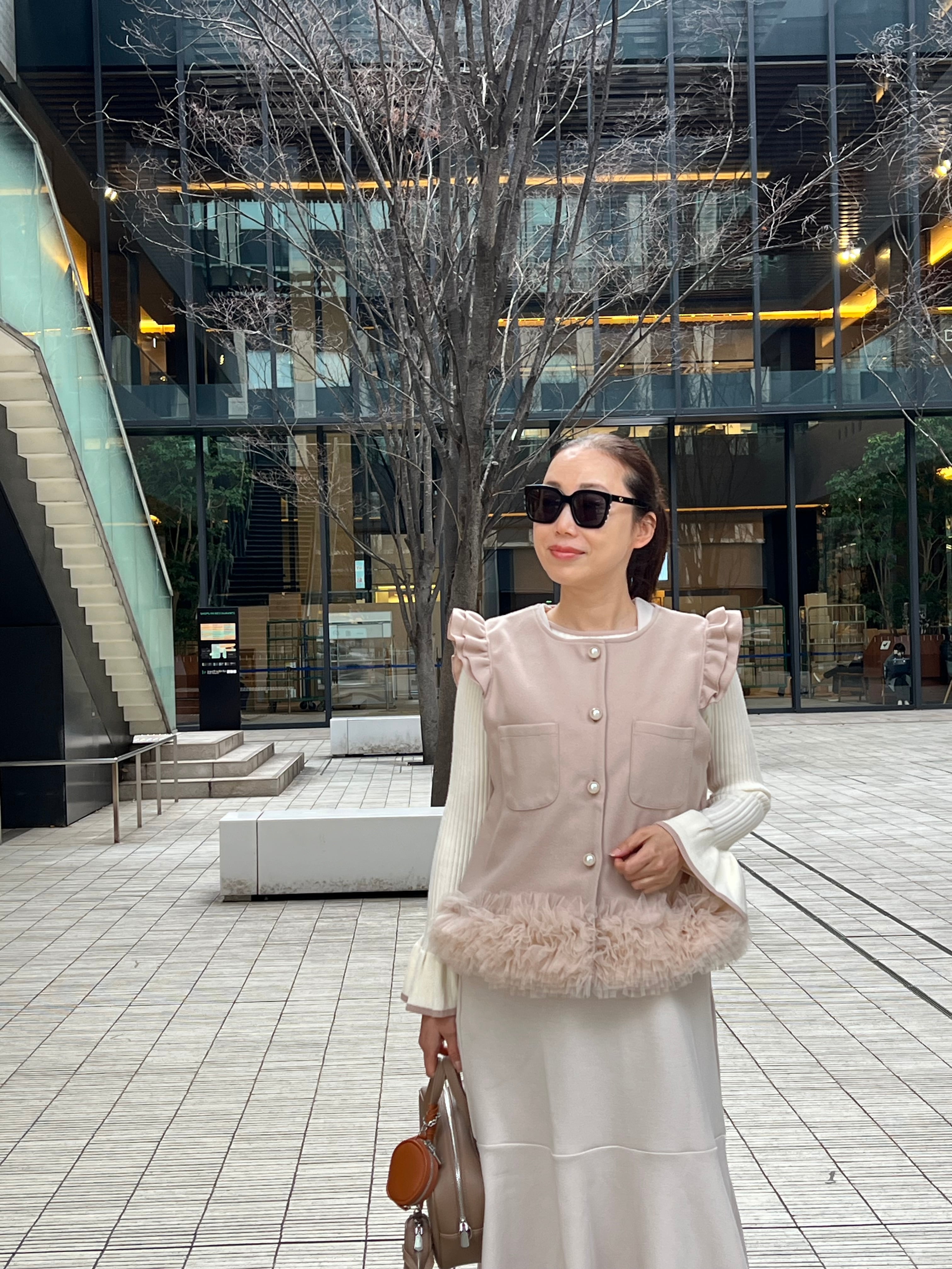 袖はフリルで甘さを少しプラス。大人目な甘カジュアルスタイルに。