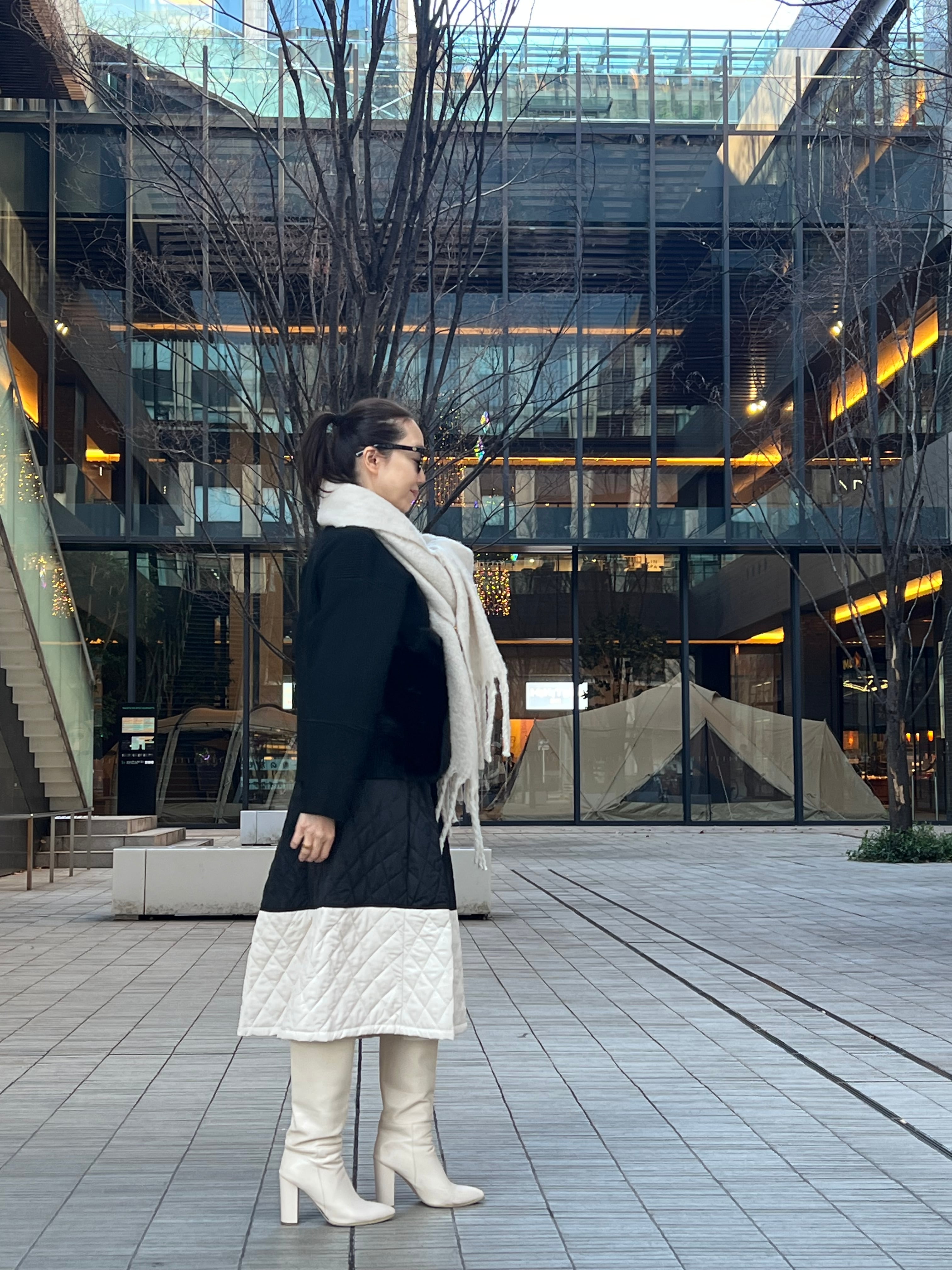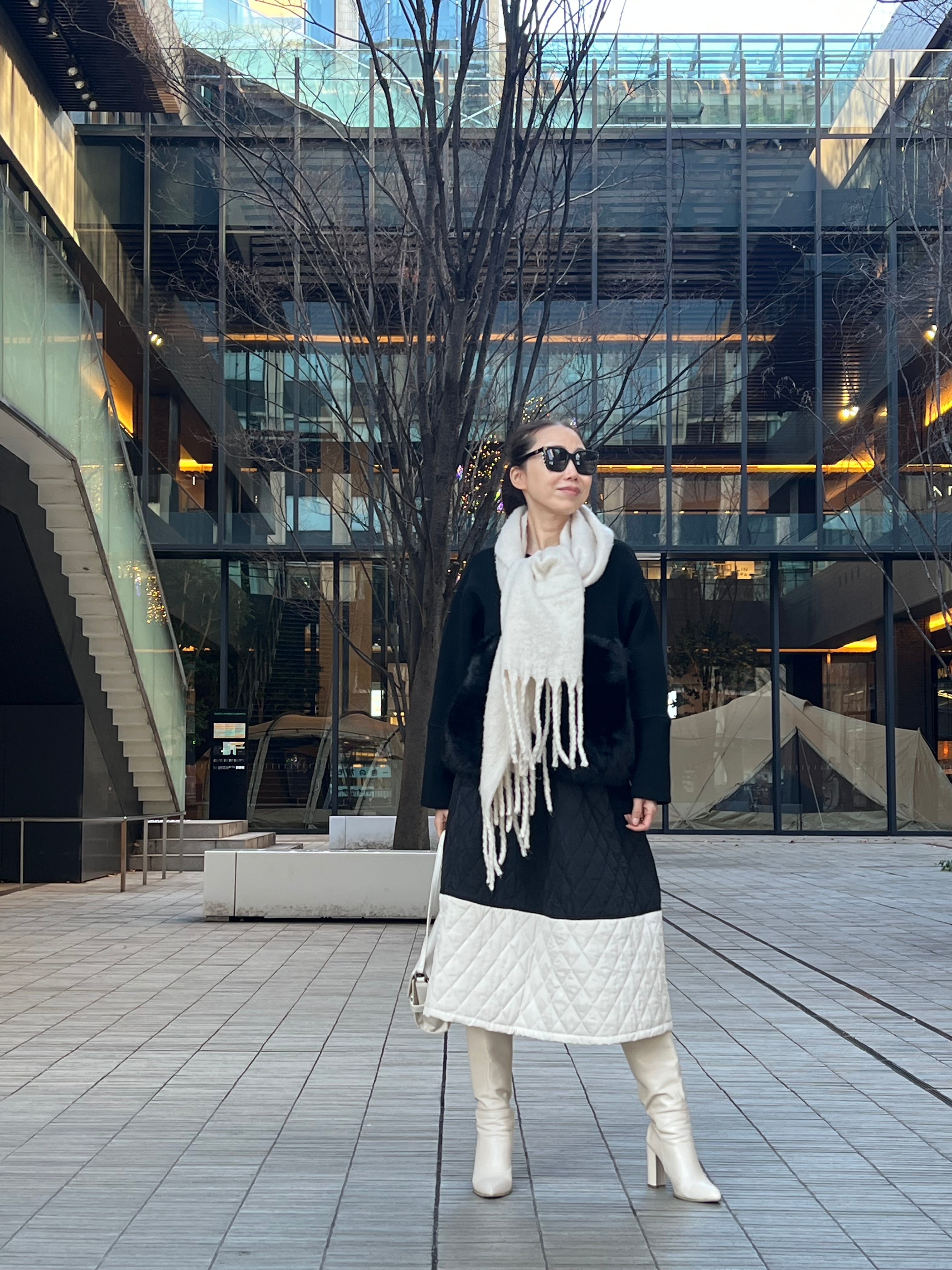 バイカラーの活躍間違い無しのキルティングスカートです。