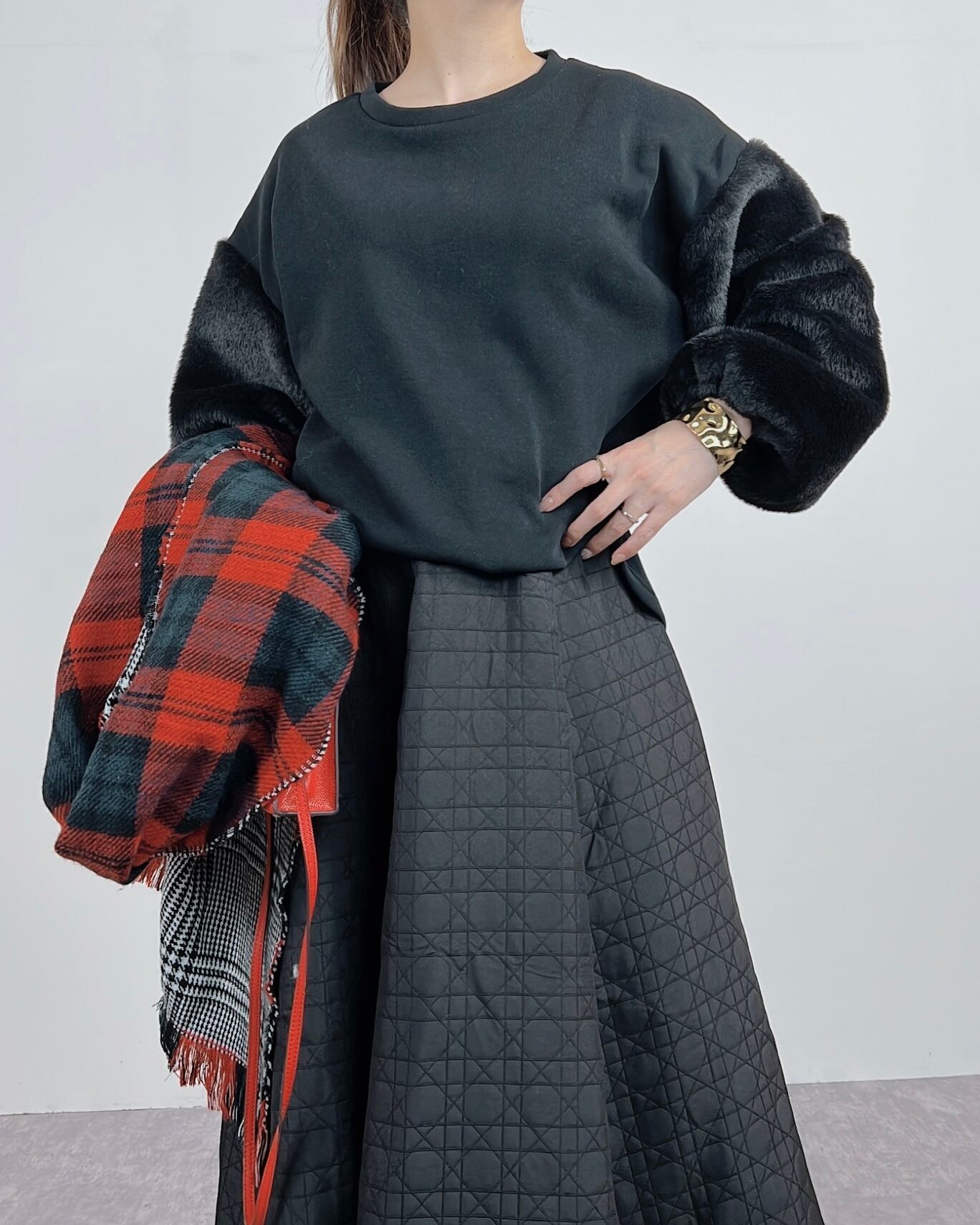 ふわふわのフェイクファーが袖部分にデザインされた、トレンド感たっぷりのプルオーバーです。内側は暖かい起毛素材を使用し、寒い季節でも快適に着用いただけます。ゆったりとしたシルエットで、カジュアルからフェミニンまで幅広いコーディネートに合わせやすい一着です。