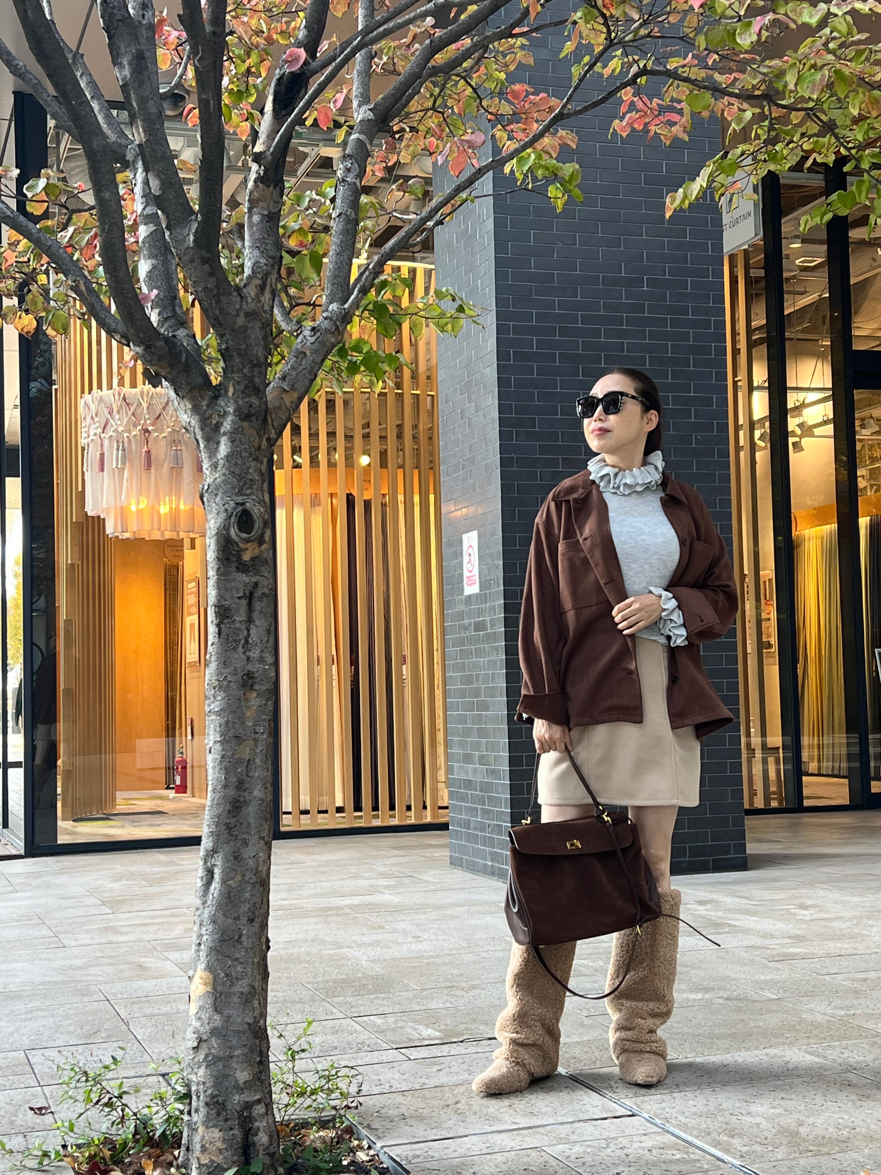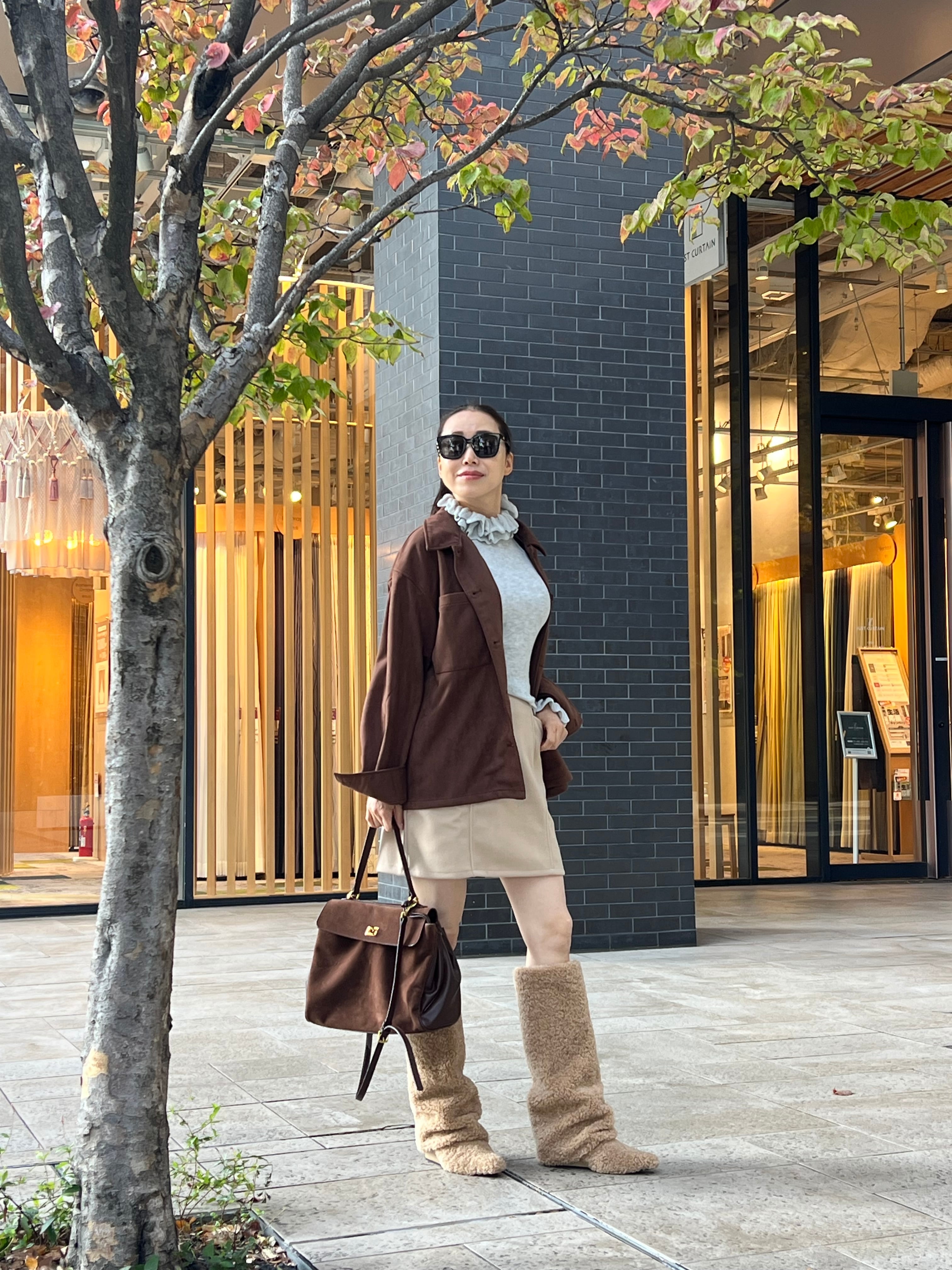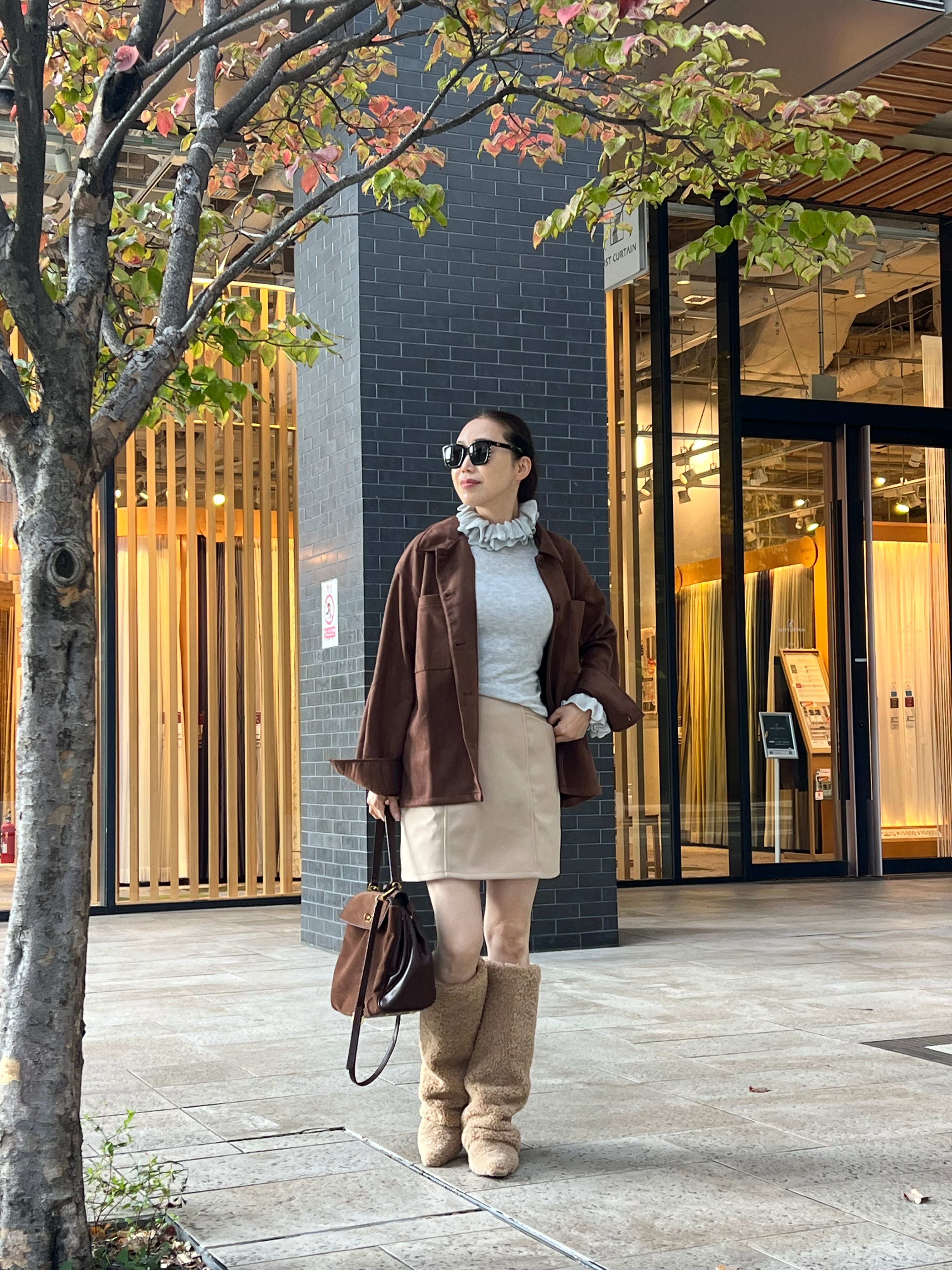 袖口にもフリルディテールをあしらい、さりげないフェミニンさをプラスしています。