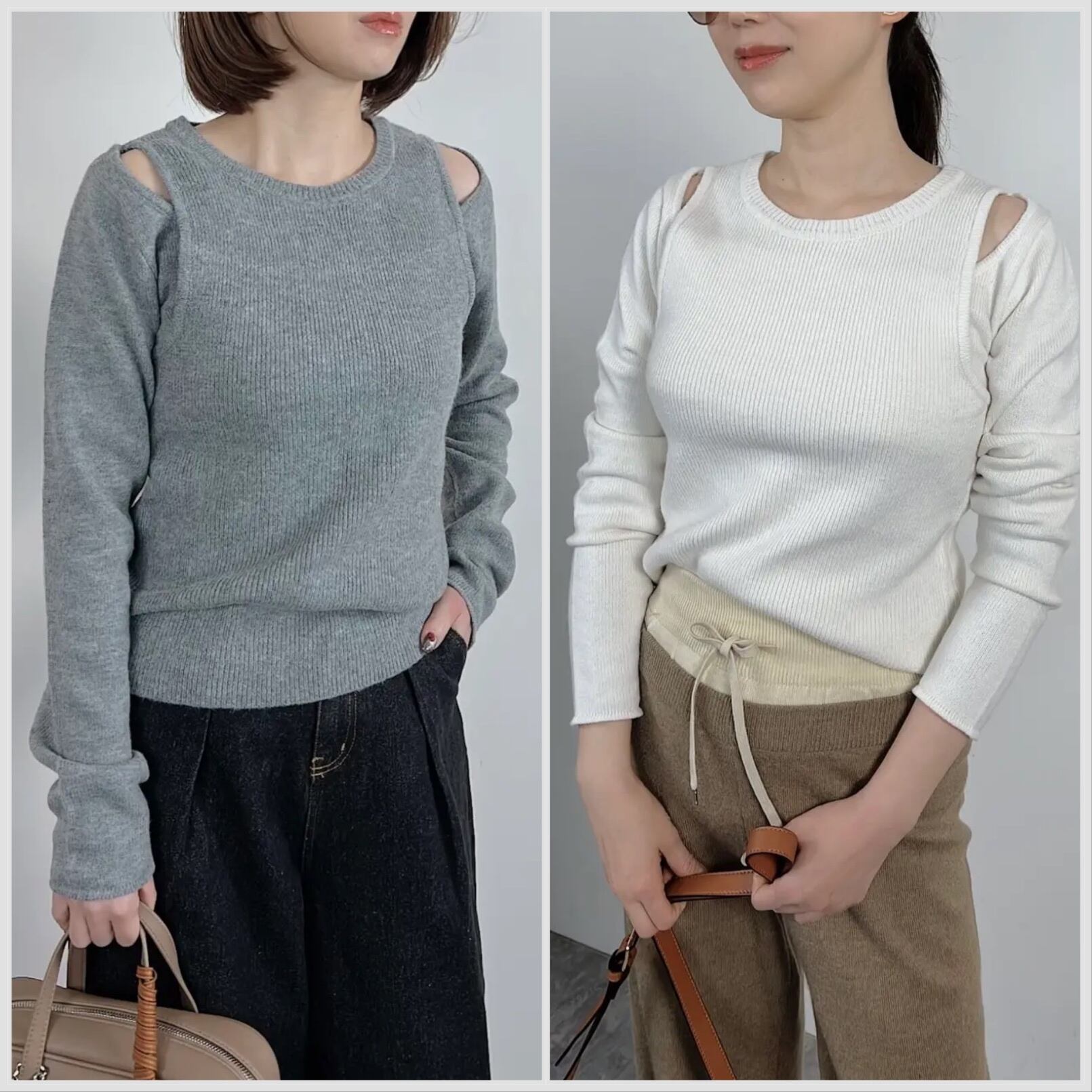 クルーネックPOとタンクを重ね着したようなニットアイテム