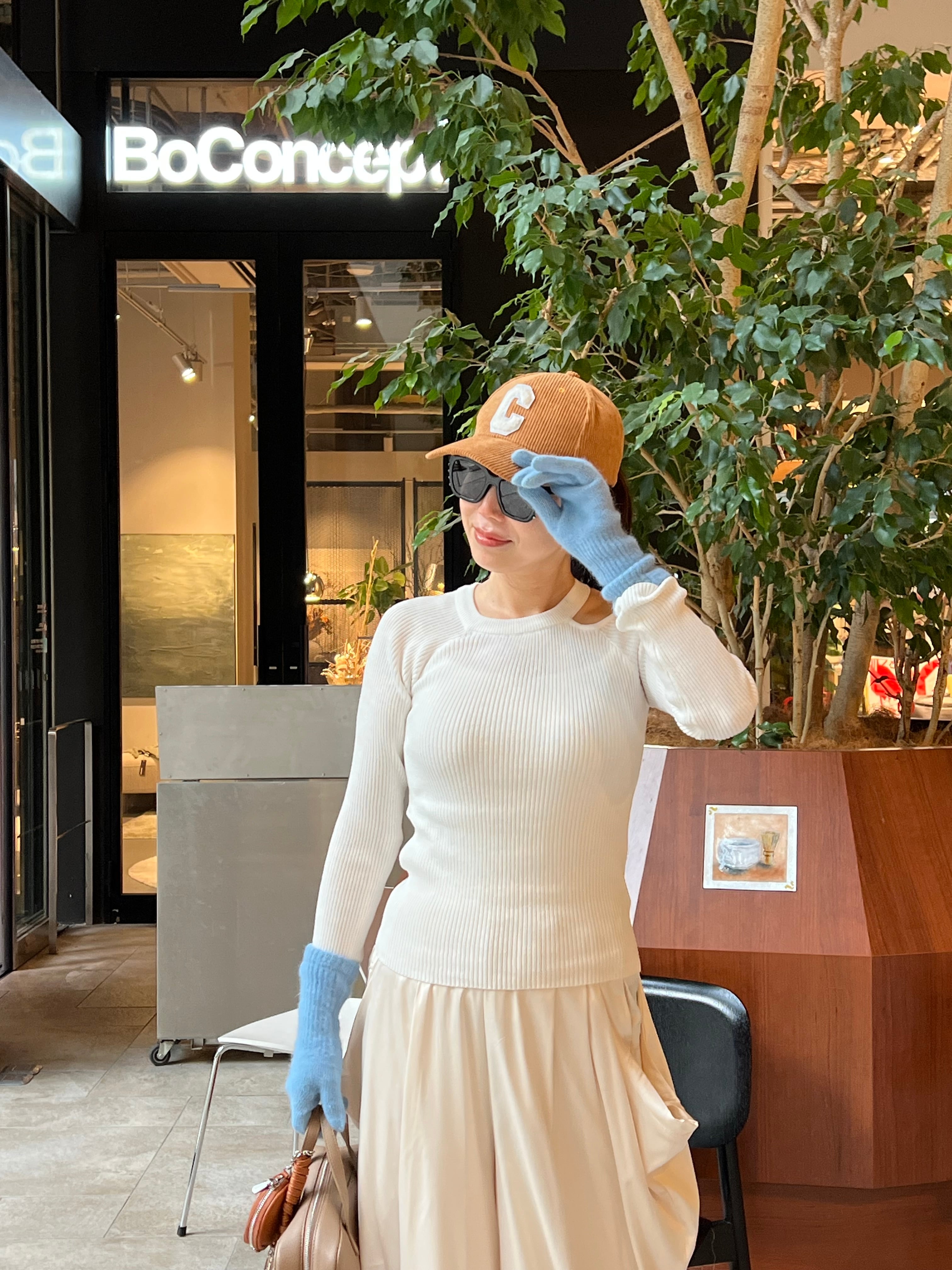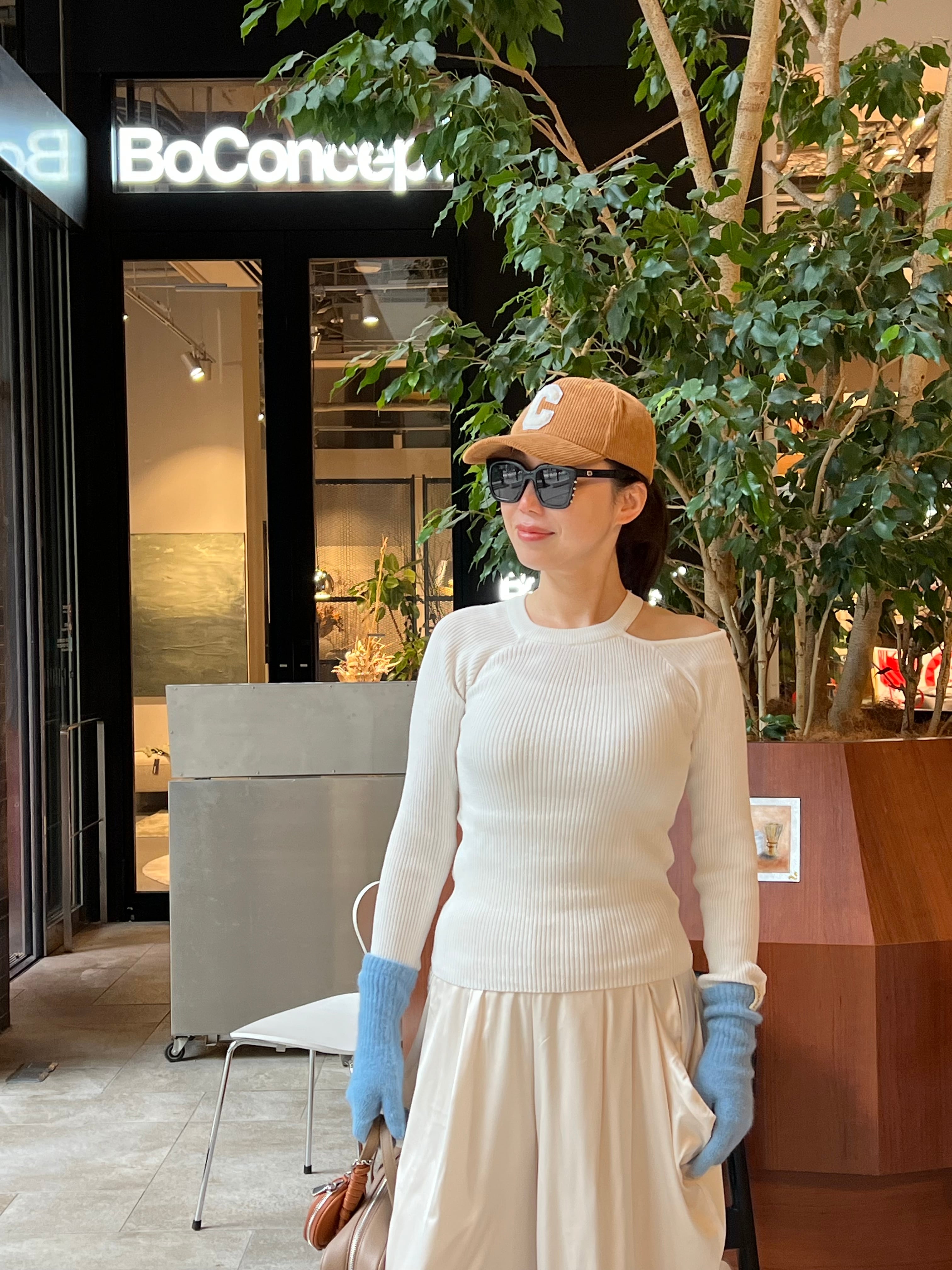 アシメデザインでちらっと肌見せが可愛いニットです。