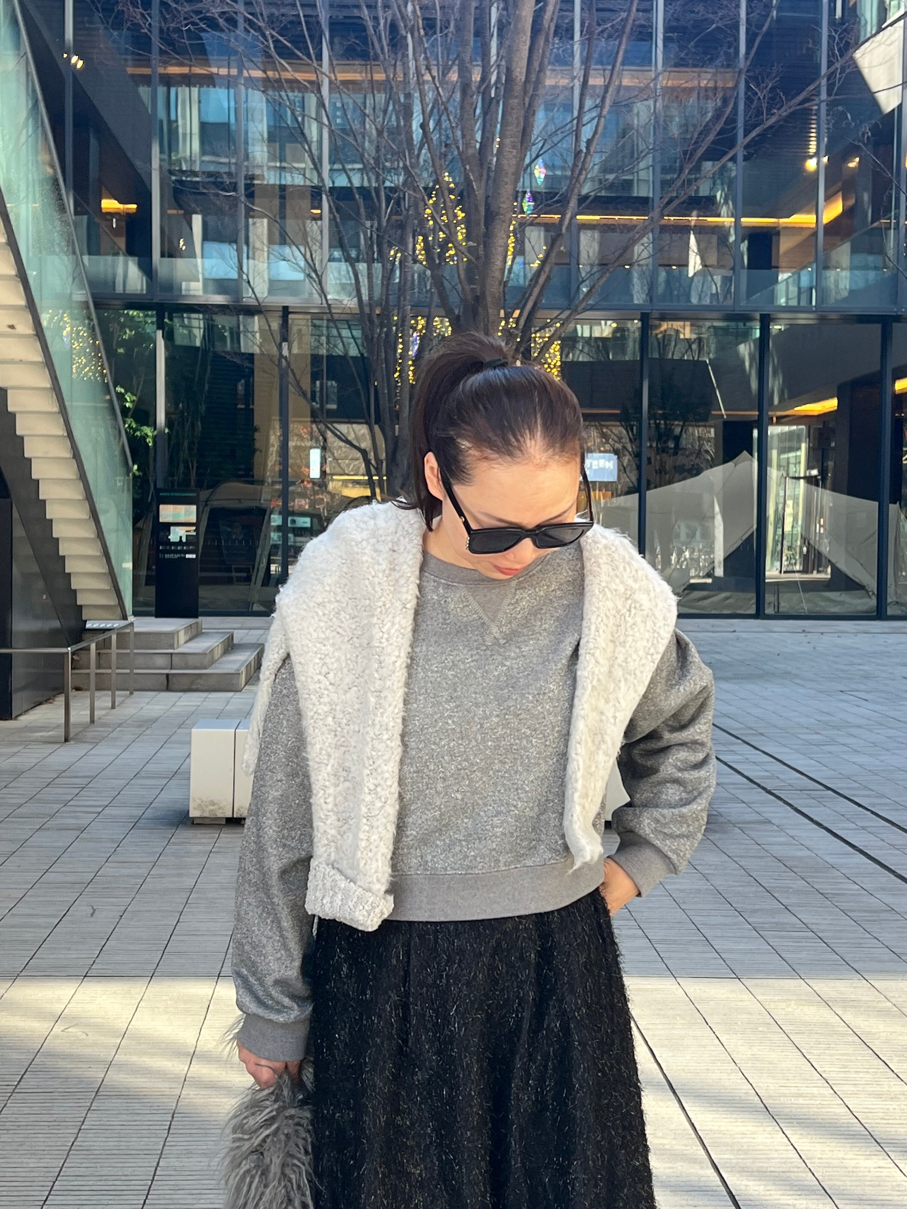 ラメが織り込まれた裏毛生地を使用した短丈プルオーバー